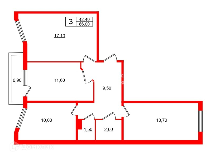 Общая площадь 66 м2