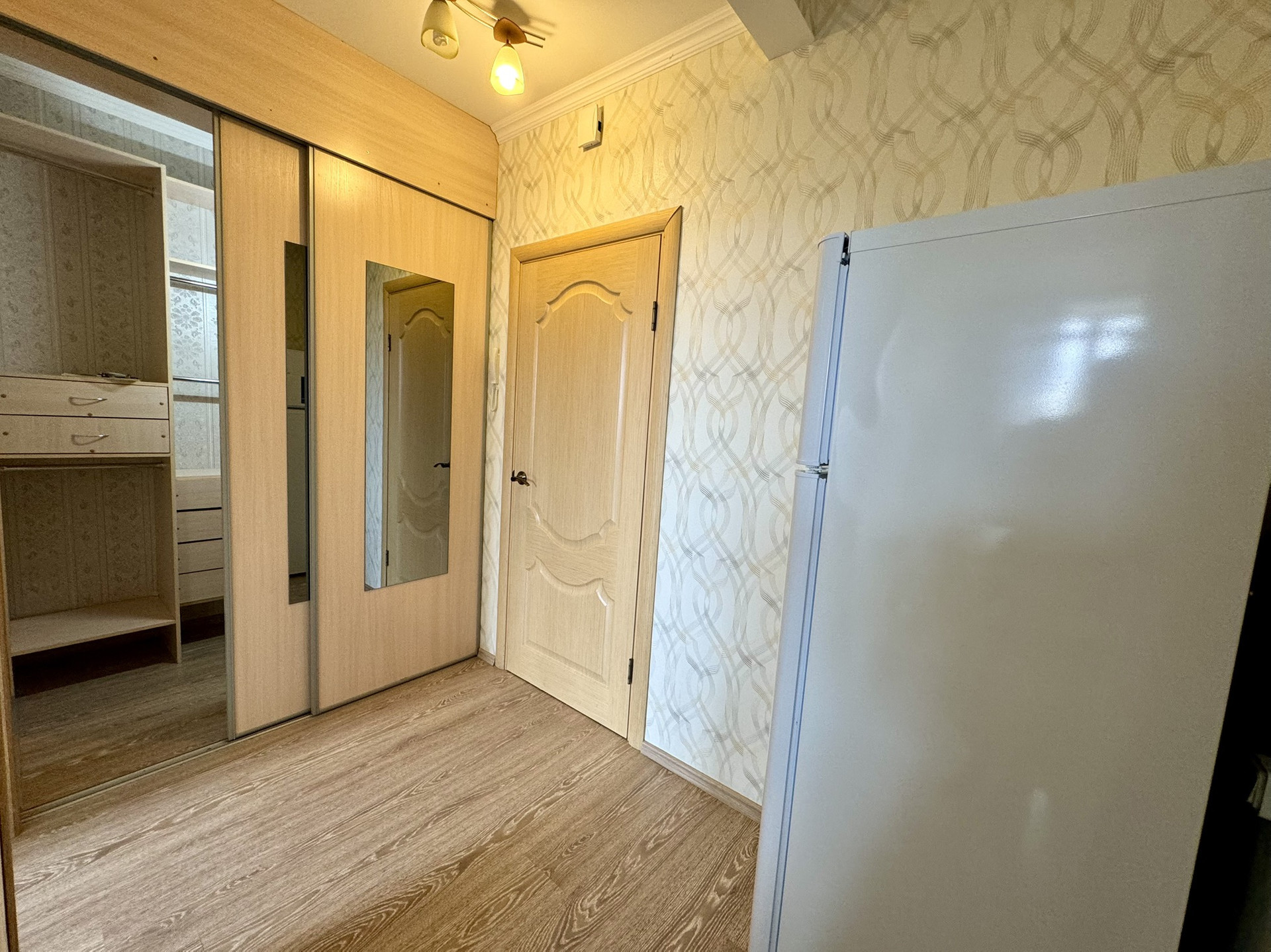 Квартира 32 кв.м , комната -14.3 кв. м, кухня-7.9 кв.м, коридор-6.8 кв.м с гардеробной, вид из окон на зелень.