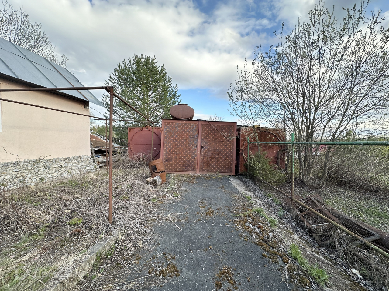 - На территории участка есть ещё кирпичный и железный гаражи