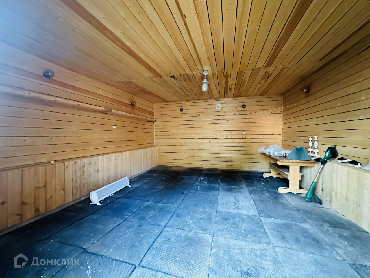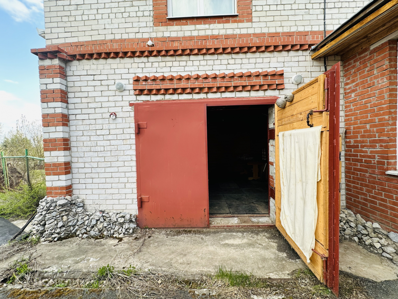 - Кирпичный гараж 30 кв.м., пристроен к дому, внутри обшит деревом, на полу плитка, железные ворота с калиткой