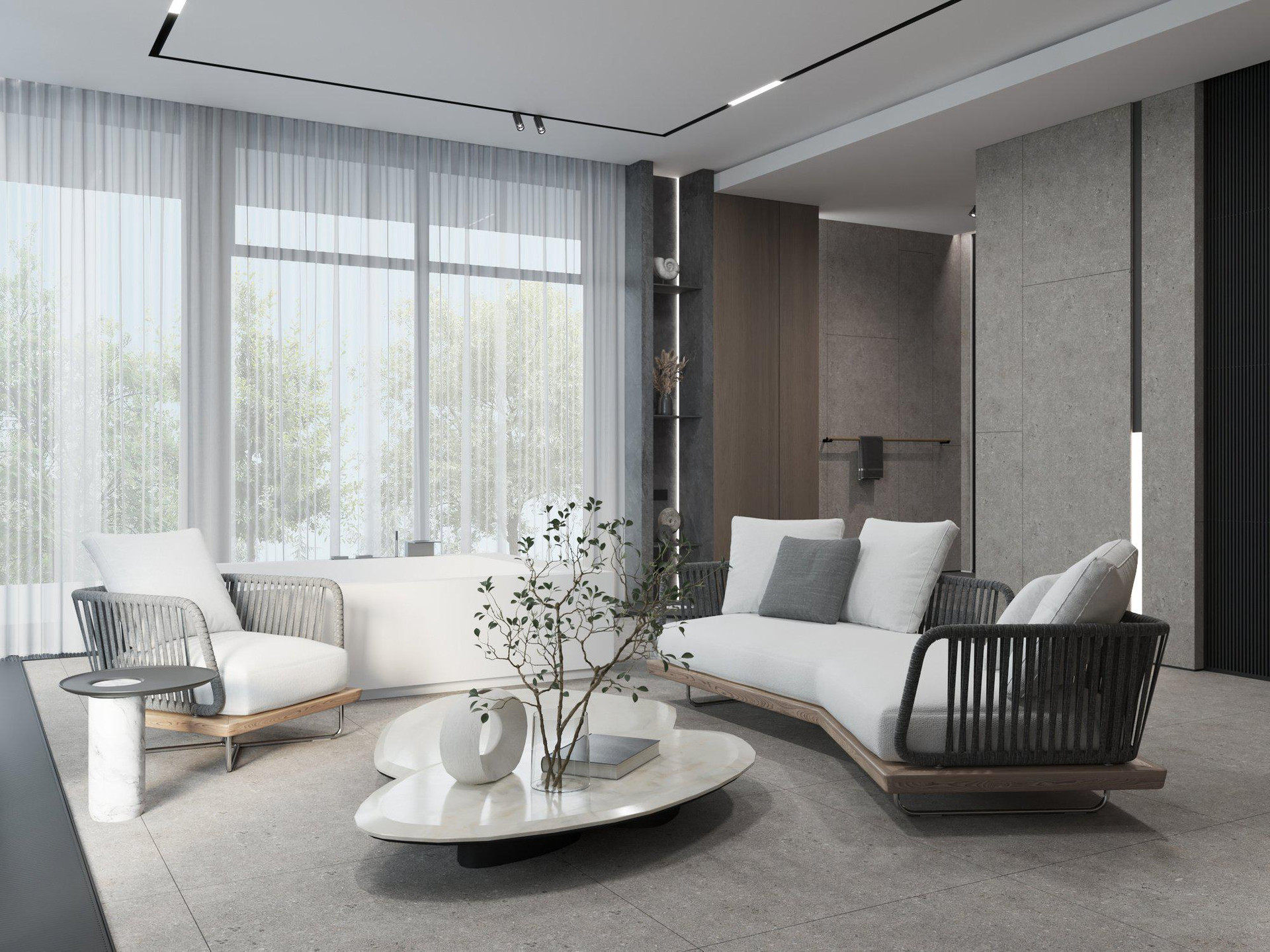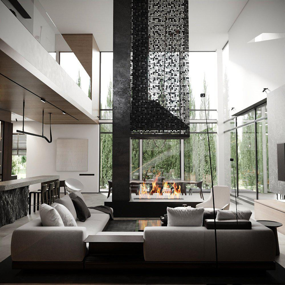 Минимализм, лаконичность, открытость, современность и натуральность легли в основу проекта дома. Панорамное остекление и минимальное количество стен позволяют стереть границы между внутренним и внешним пространствами.