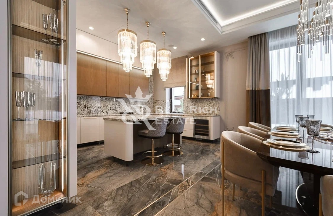 и WiFi, видеонаблюдение по периметру участка. Мебель в доме выполнена на заказ, кухня (со встроенной немецкой бытовой техникой Kuppersbusch).