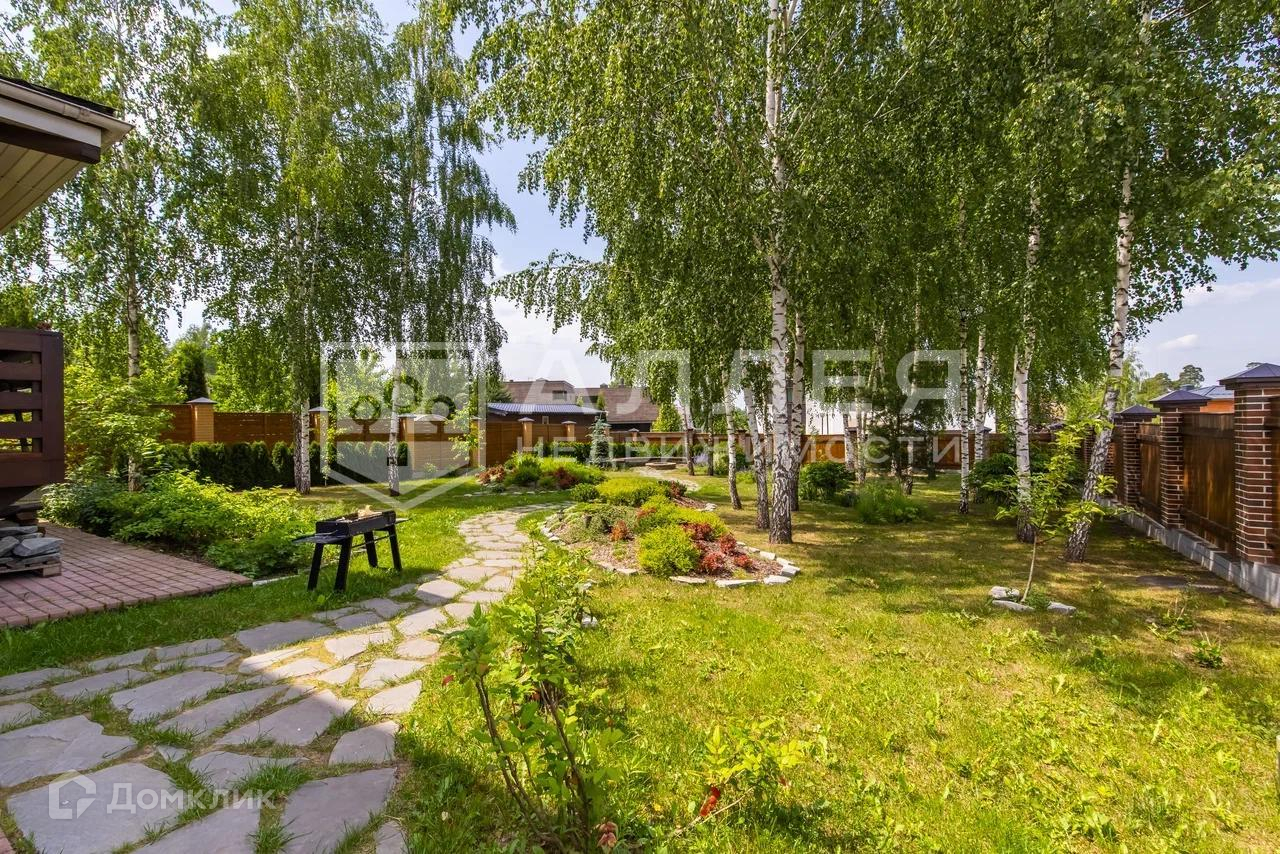 Участок: Выровненный участок с ландшафтным дизайном. Высажен газон, выложены прогулочные тропинки. Растут взрослые березы и различные кустарники, укрывающие территорию и делающие ее более приватной.