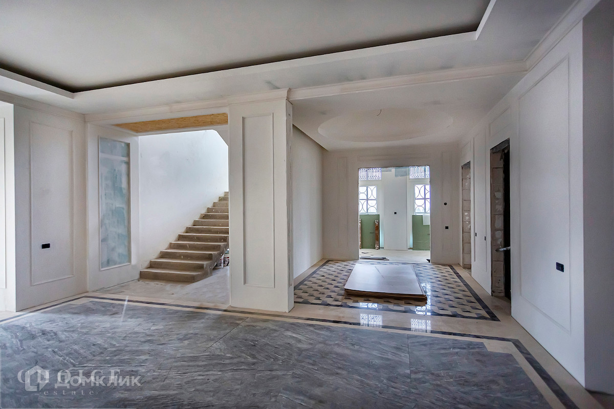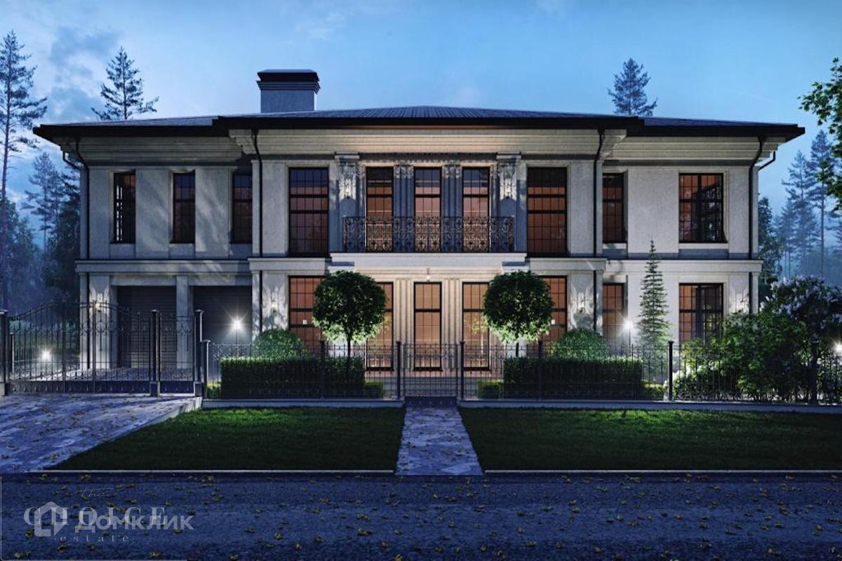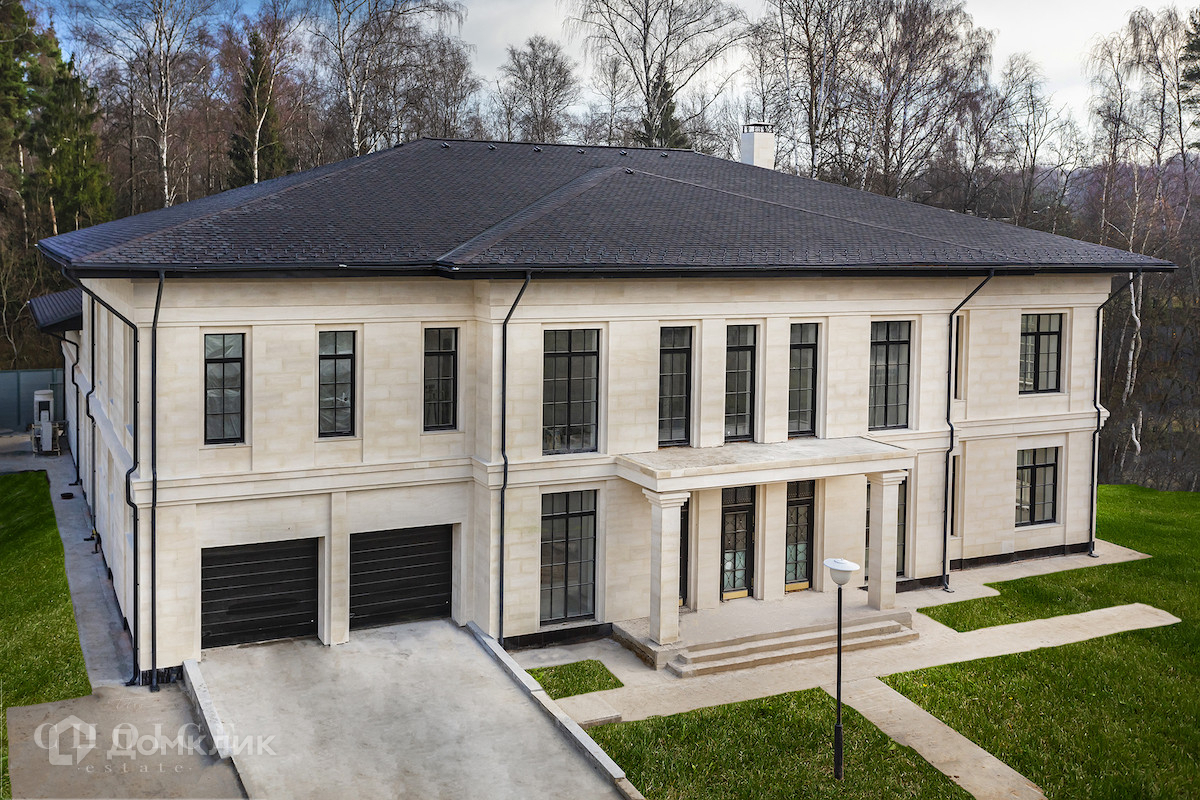 Загородный особняк площадью 1000 м² расположен на участке правильной формы 40 соток рядом с лесом. Светлый фасад здания облицован дагестанским камнем и песчаником. Оформление интерьера продолжает заданный архитектурой неоклассический стиль, в отделке использовали североитальянский мрамор и паркет из канадского дуба, установлена сантехника Gessy, Villeroy&Boch. Планировкой дома предусмотрены 5 спален, просторная гостиная с камином, кухня-столовая, кабинет, бассейн с террасой и русская баня с купелью. В контуре коттеджа расположены блок для гостей и персонала с 4-мя спальнями и гараж на 2 машины. На мансардном этаже можно обустроить кинотеатр или спортзал. На участке выполнен ландшафтный дизайн, вымощены дорожки, засеян газон и обустроен пруд.