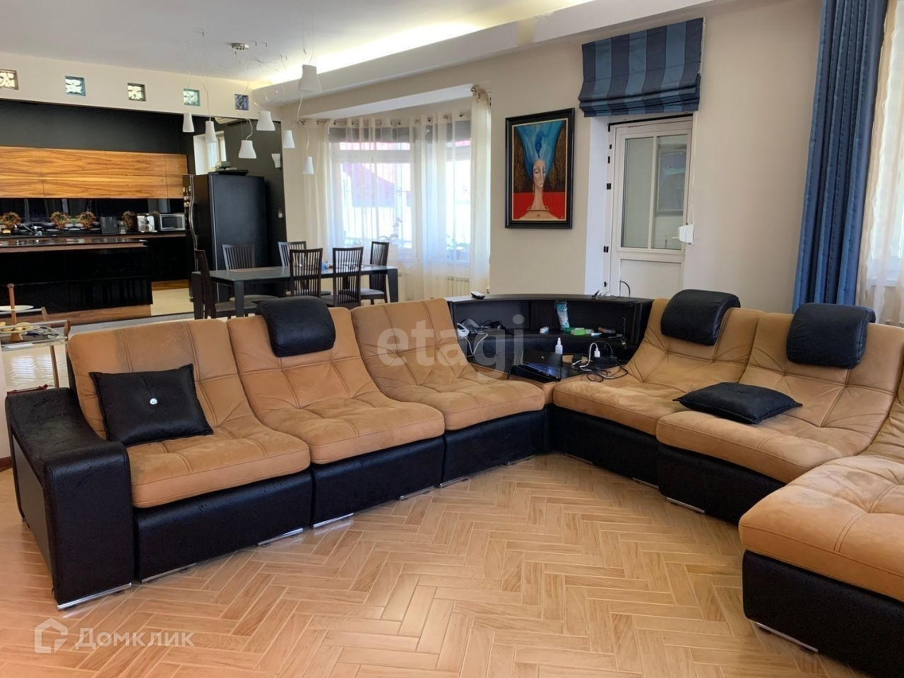 Основной дом построен по зарубежному проекту. В нем находится: 5 спален, 5 санузлов, 2 кабинета, зимний сад, холлы, биллиардная, бар, сауна, плавательный бассейн (чаша 6х4) с выходом на пляжную зону, теплый гараж на 2 машины, постирочная, мастерская, спортзал. Гостиная совмещена с кухней-столовой, общая площадь порядка 70 кв.м. с выходом на патио. Очень удобная и функциональная планировка.