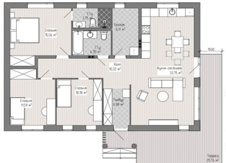 Общая площадь: 75 м2