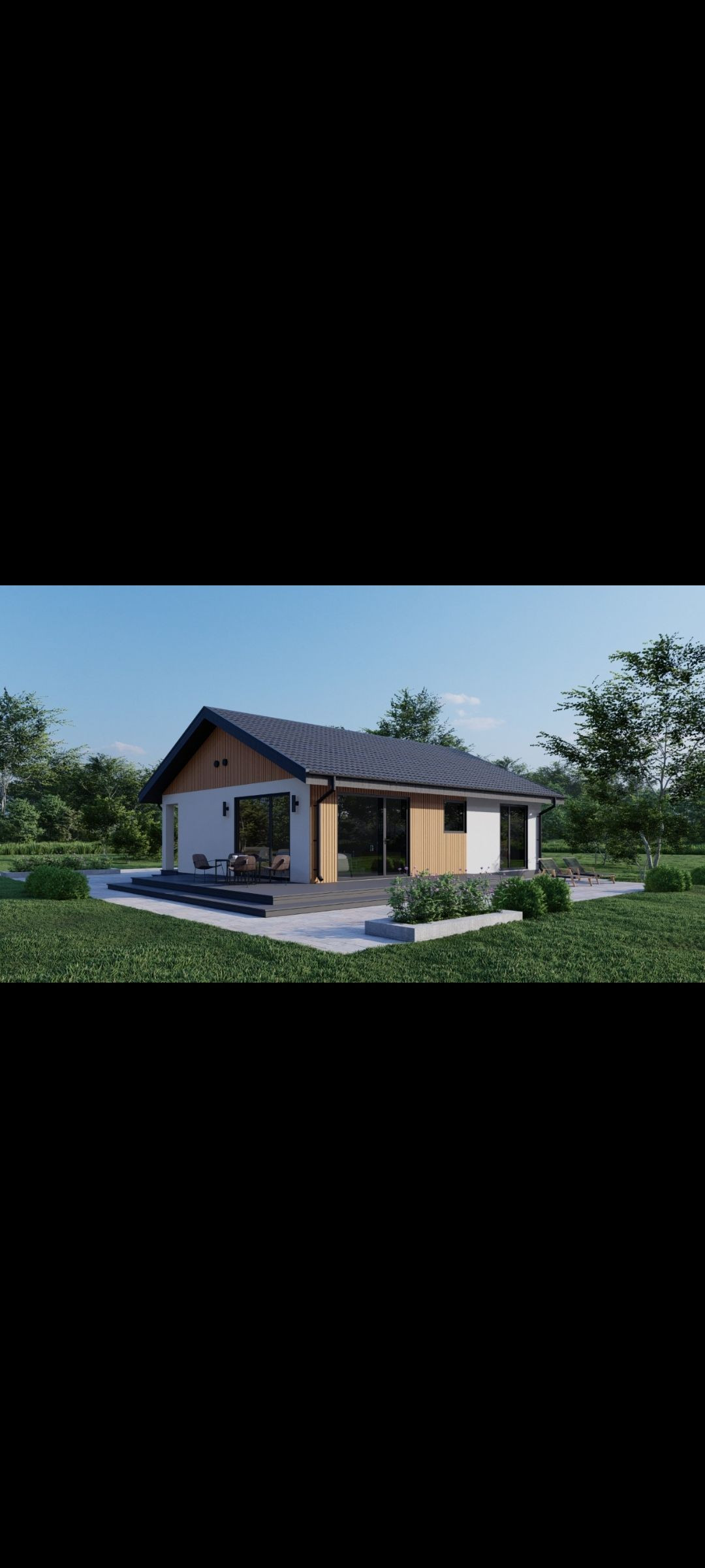 Фасад – декоративная штукатурка и краска DERUFA с элементами планкена