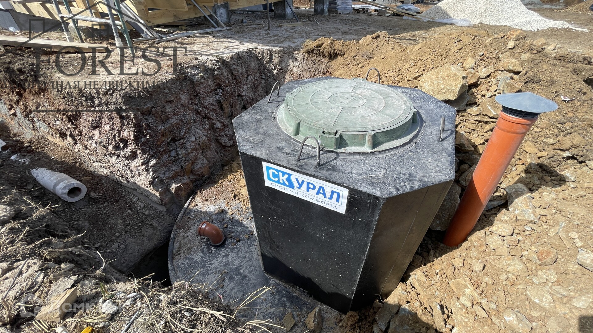 Стены – газобетонные блоки  300 мм  с утеплением  100 мм   базальтовой ватой     Фасад – декоративная штукатурка с элементами планкена      Фундамент – буронабивной ленточный на сваях, армированный ростверк      Утепленная кровля: базальтовый утеплитель крыши, толщина утепления 200 мм      Отопление дома – теплые водяные полы ,  электрический котёл      Канализация:  септик  с разводкой по дому до точек подключения      Собственная скважина 75 м