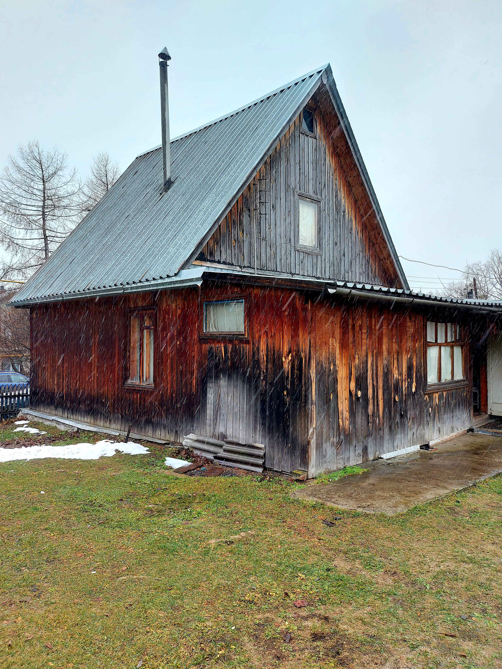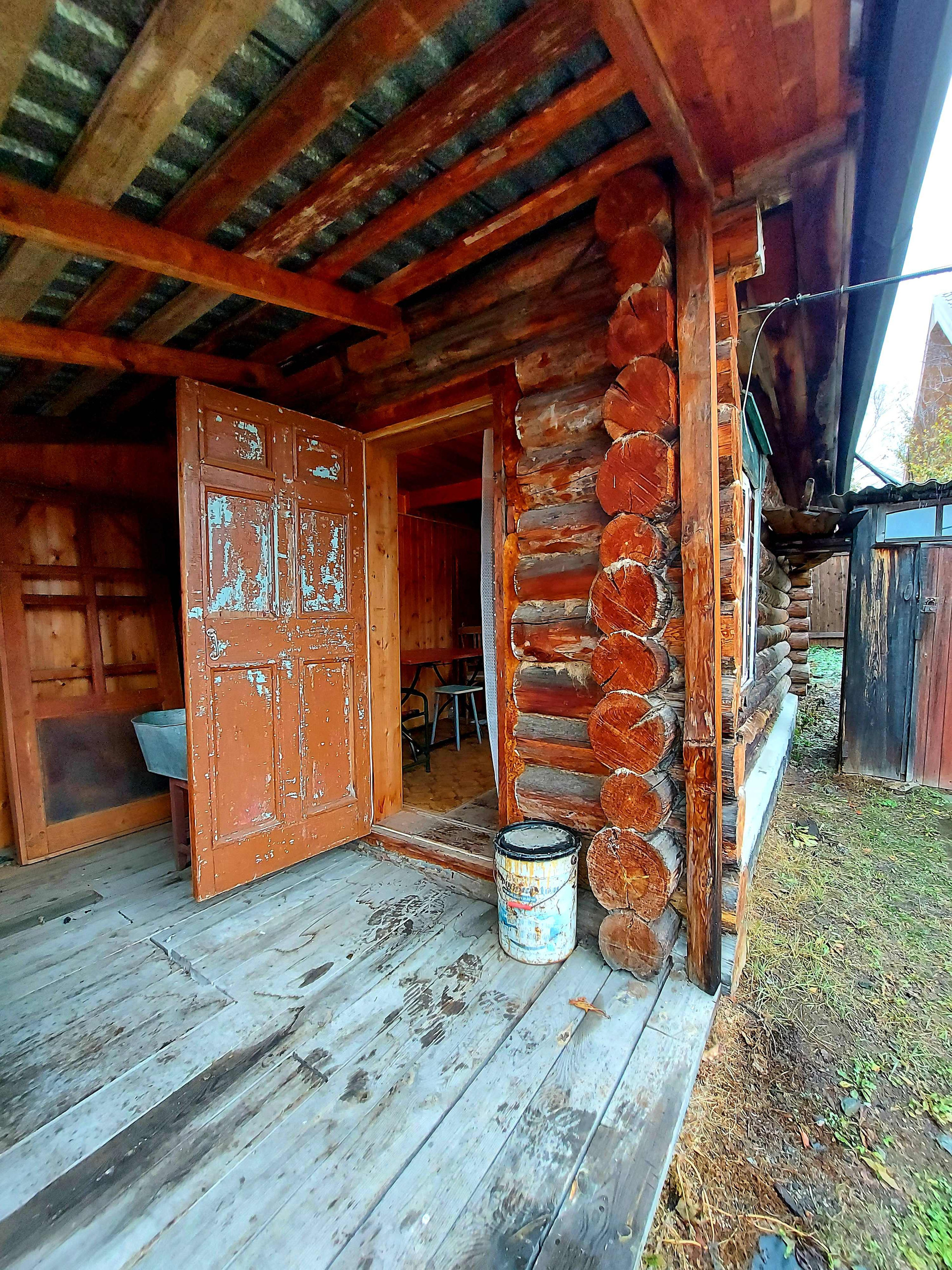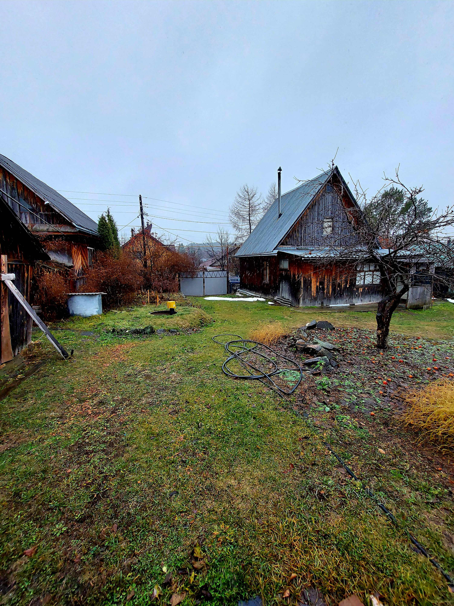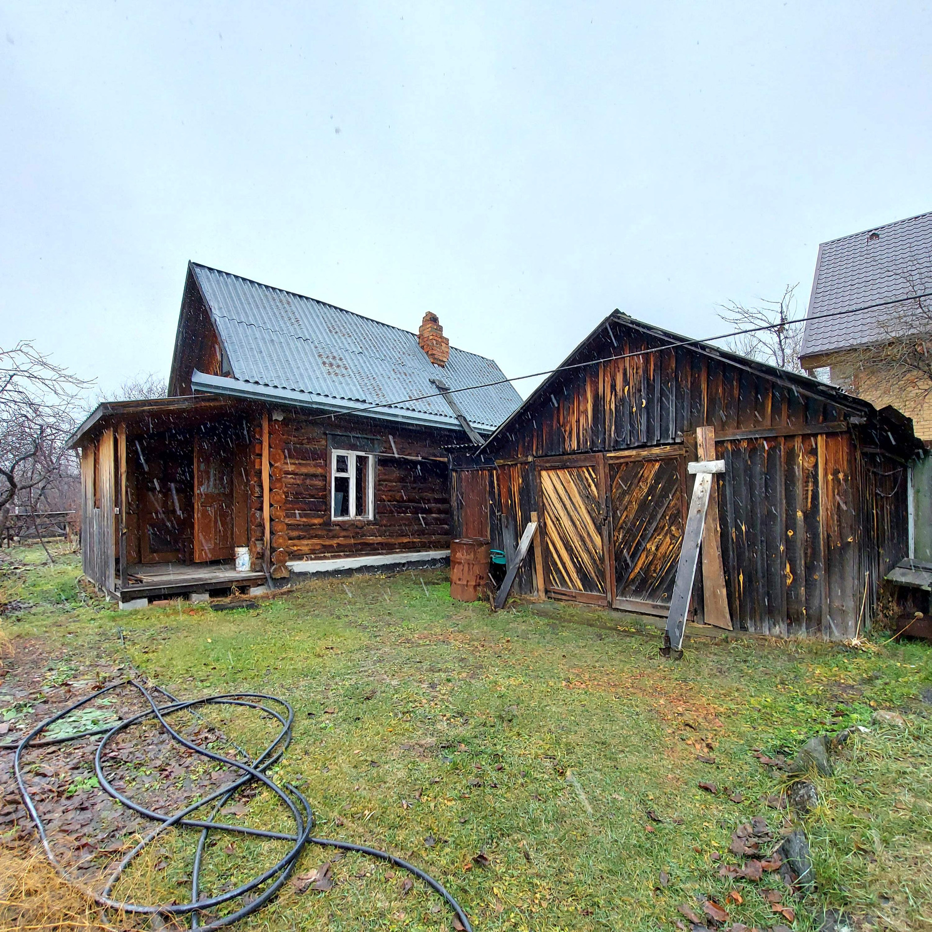 На участке ДВА двухэтажных дома с верандами: 6х6 из бревна и 5х6 из бруса. Оба дома с печью, на первых этажах тепло и зимой. Электричество заведено в дом.