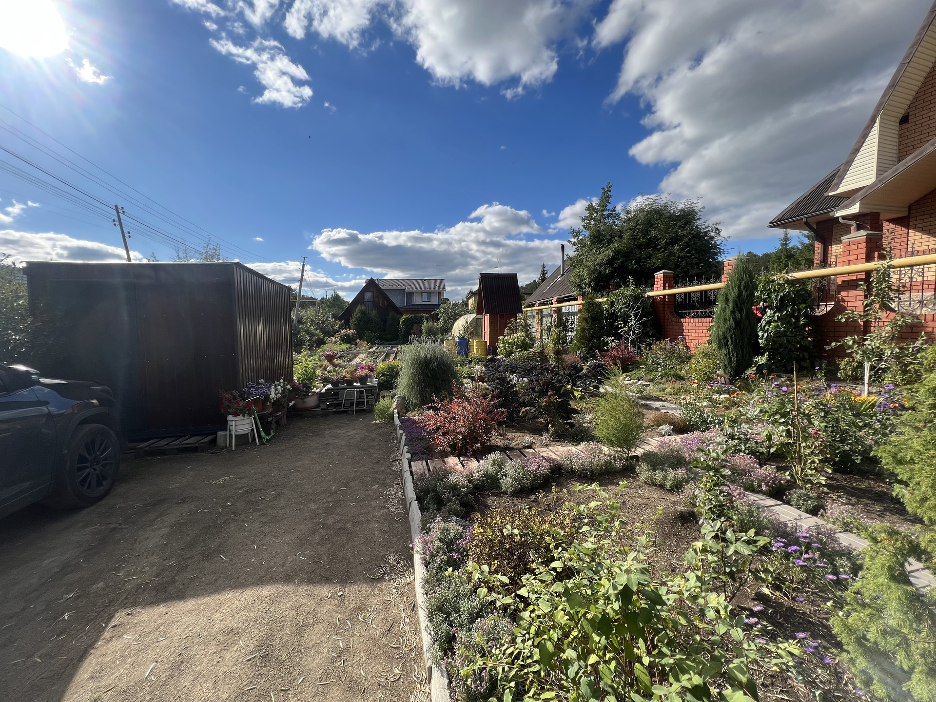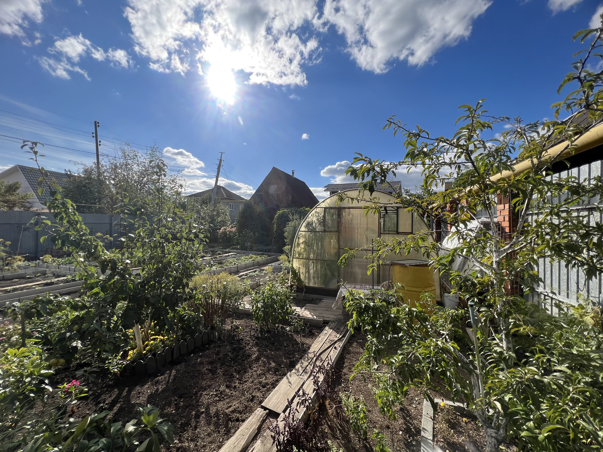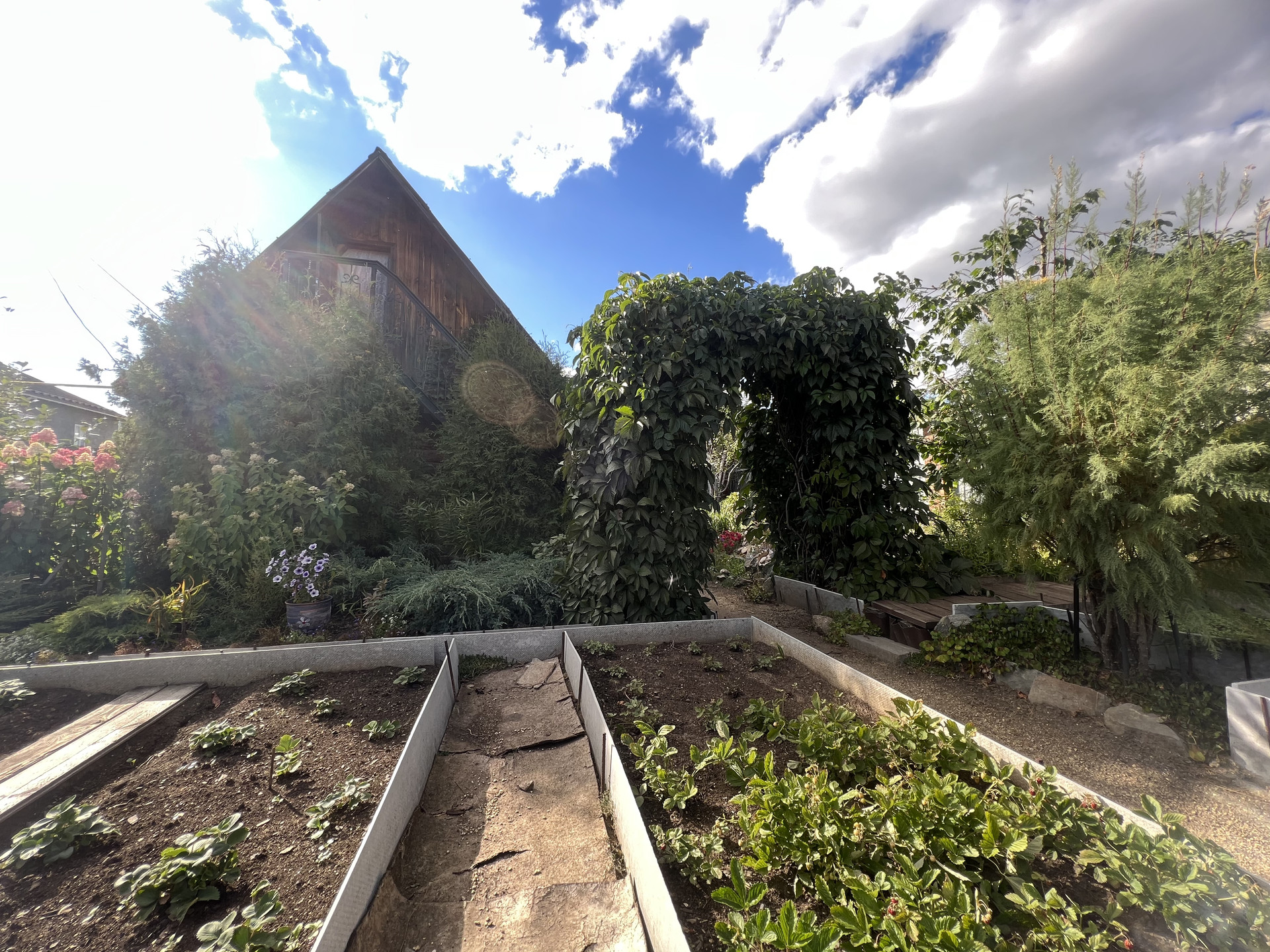 Выращены плодовые деревья (абрикосы, яблони, груши, сливы, вишни, ирга), кустарники (малина, крыжовник, смородина, декоративные кустарники, барбарис, сирень, туи, можжевельники).