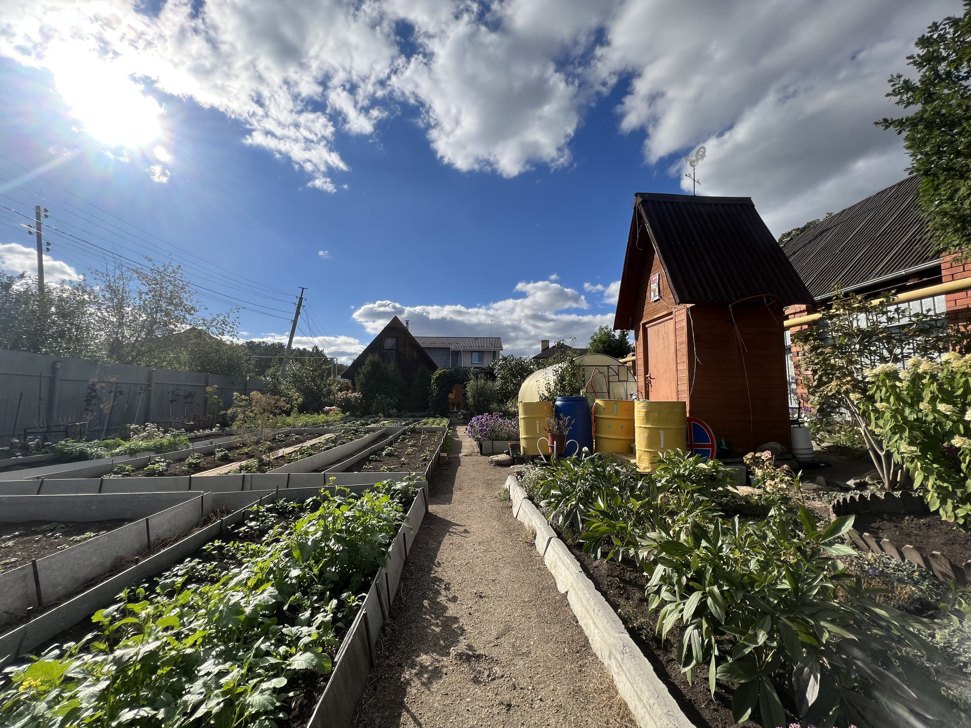 На участке есть бытовые постройки, летняя кухня, летний душ из нержавейки.