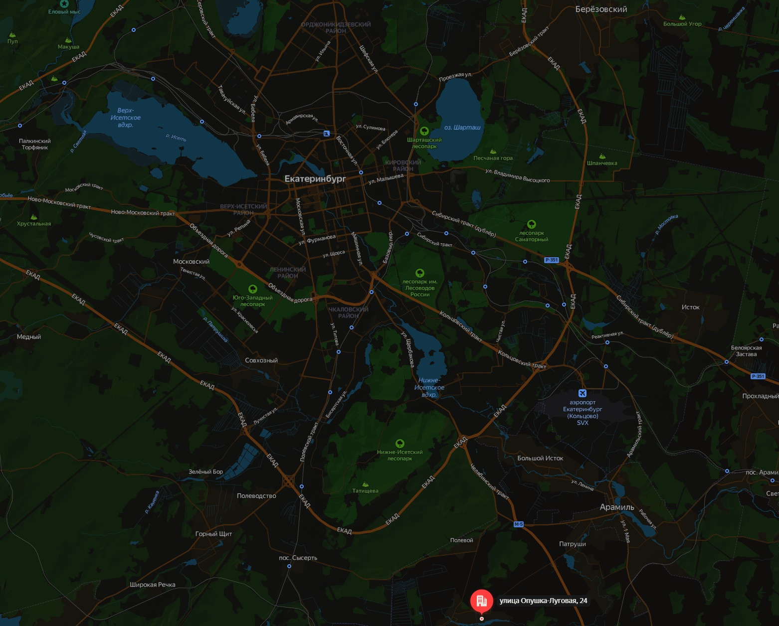 8 км от Екатеринбурга по Челябинскому тракту.