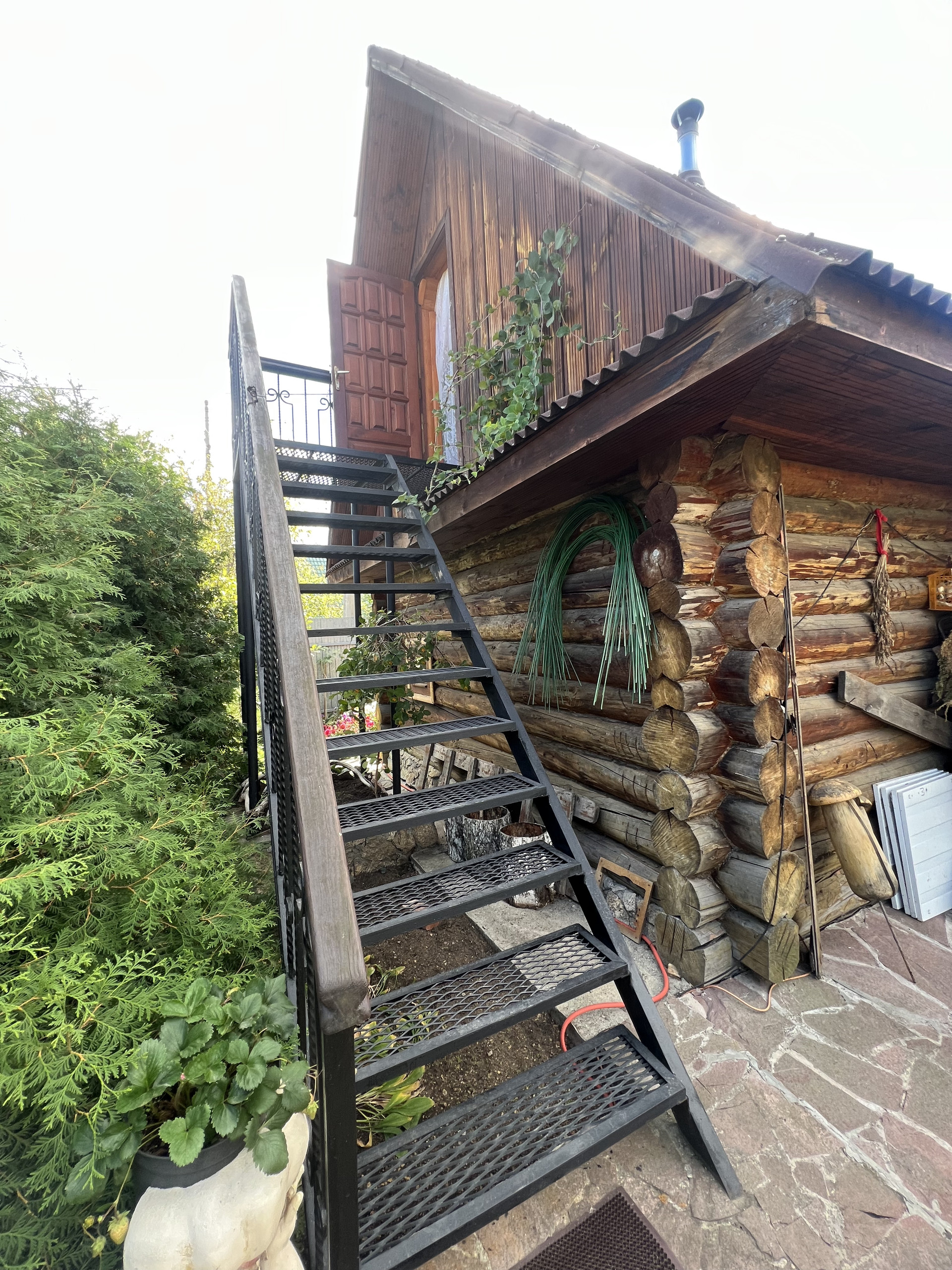 Металлическая лестница на второй этаж снаружи.