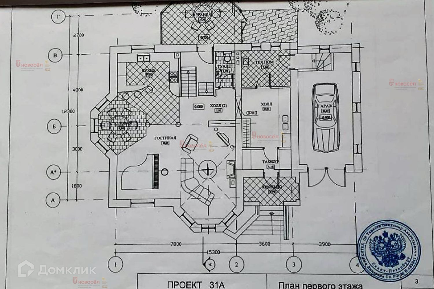 К дому пристроен гараж на два автомобиля и просторная застекленная веранда с мангалом и печью площадью 35 кв.м (в общую площадь дома не входит).