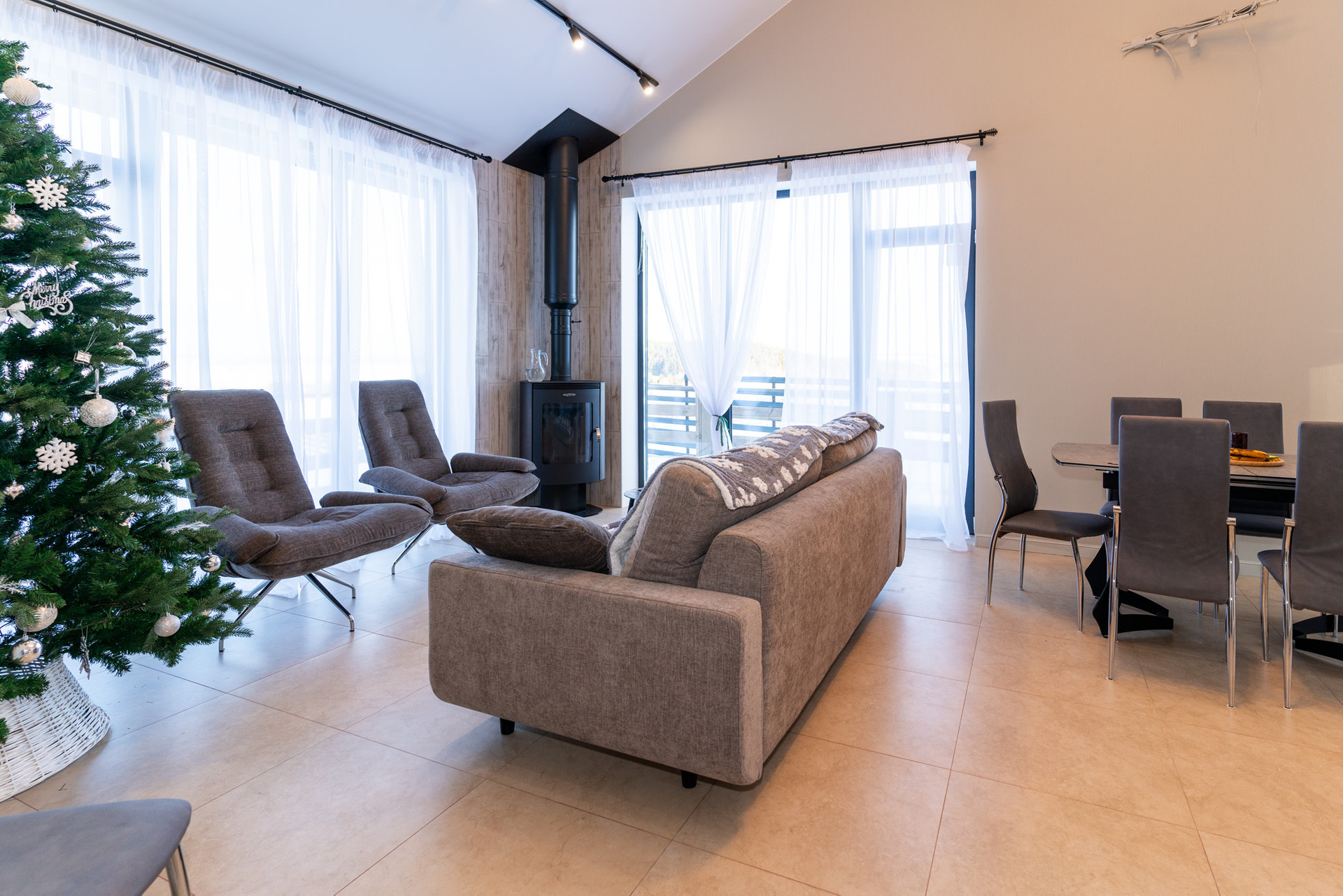 Планировка дома продумана до мелочей: светлая кухня-гостиная 28 кв м с панорамными окнами и выходом на террасу, три комнаты (10,73 кв.м, 10,44 кв.м, 11,10 кв.м), одна из которых мастер-спальня, две гардеробные (2,66 кв.м. и 2,66 кв.м.) два санузла (6,59 кв.м и 3,24 кв.м) и котельная с отдельным выходом (5,40 кв.м). Потолки в гостиной 4 метра!