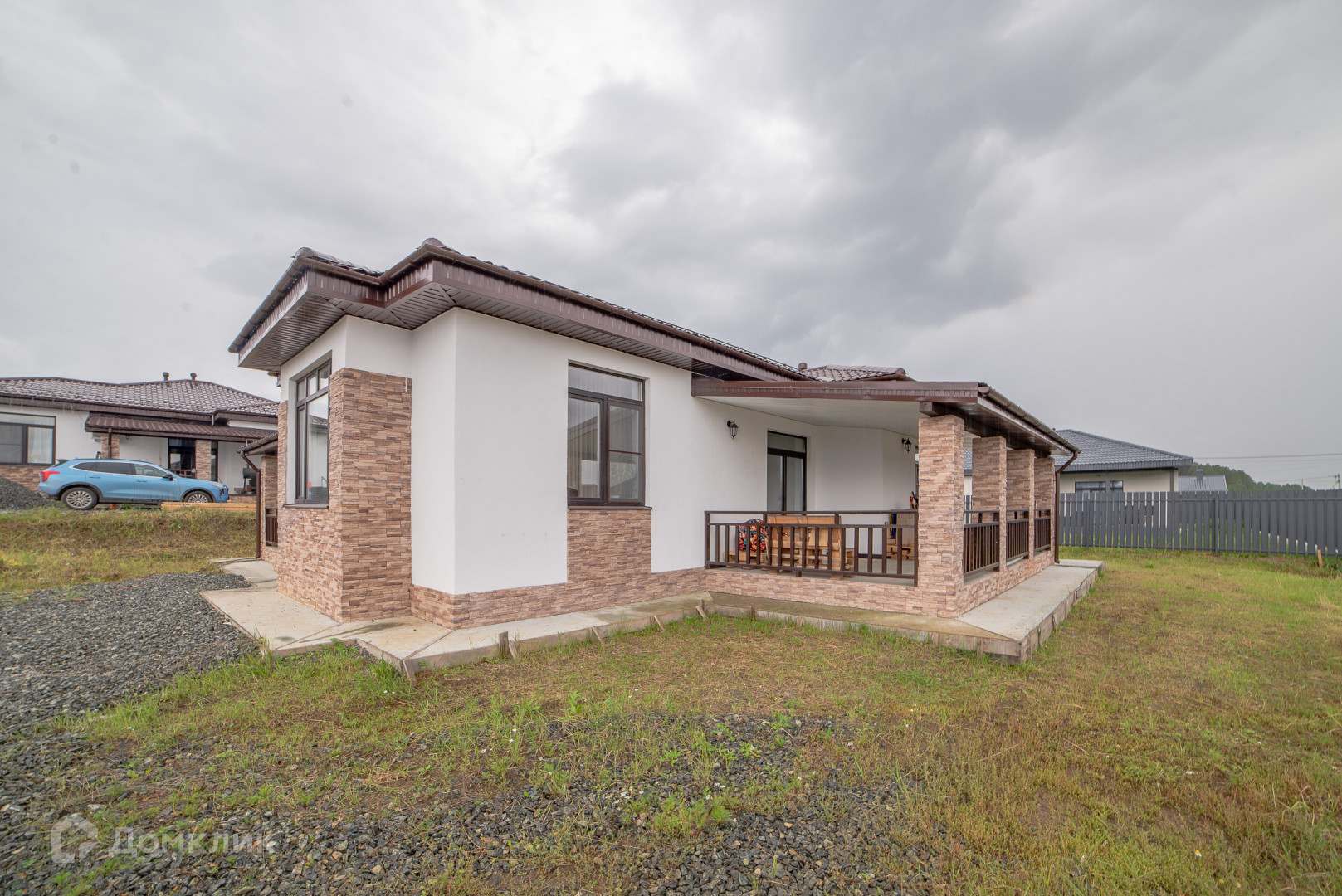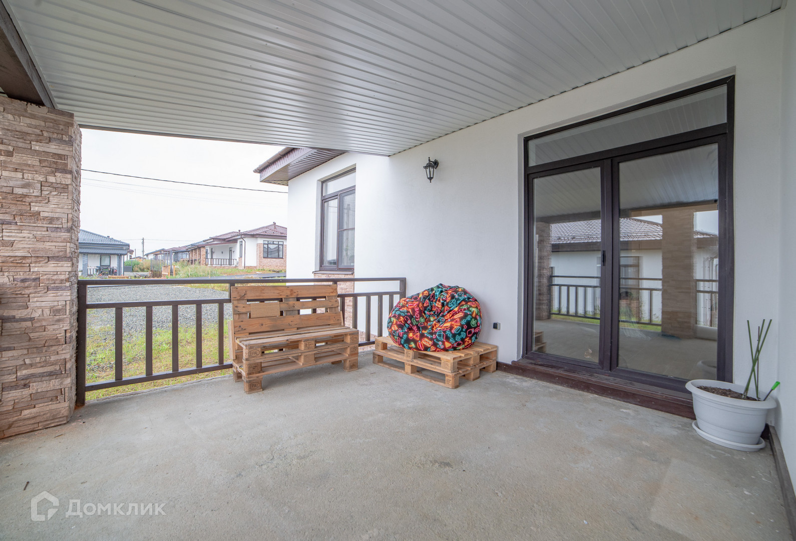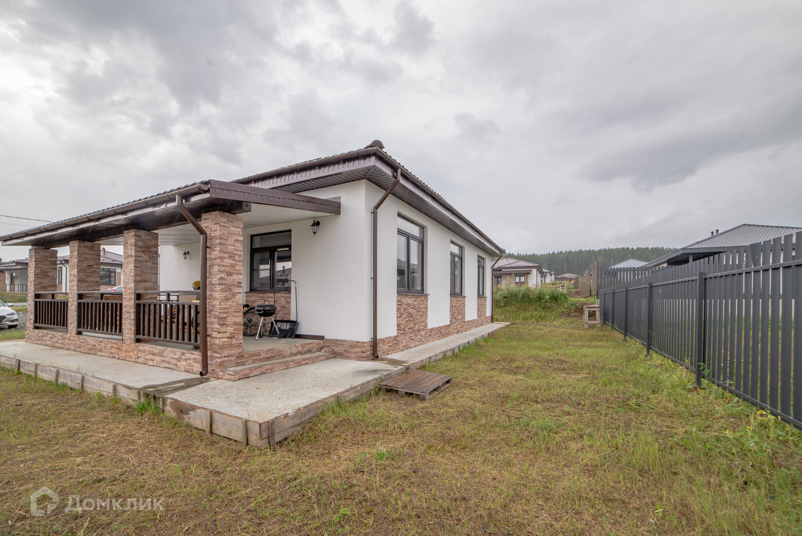 Полностью готовый дом к проживанию с мебелью, техникой, благоустроенная территория двора, есть пространство для отдыха.