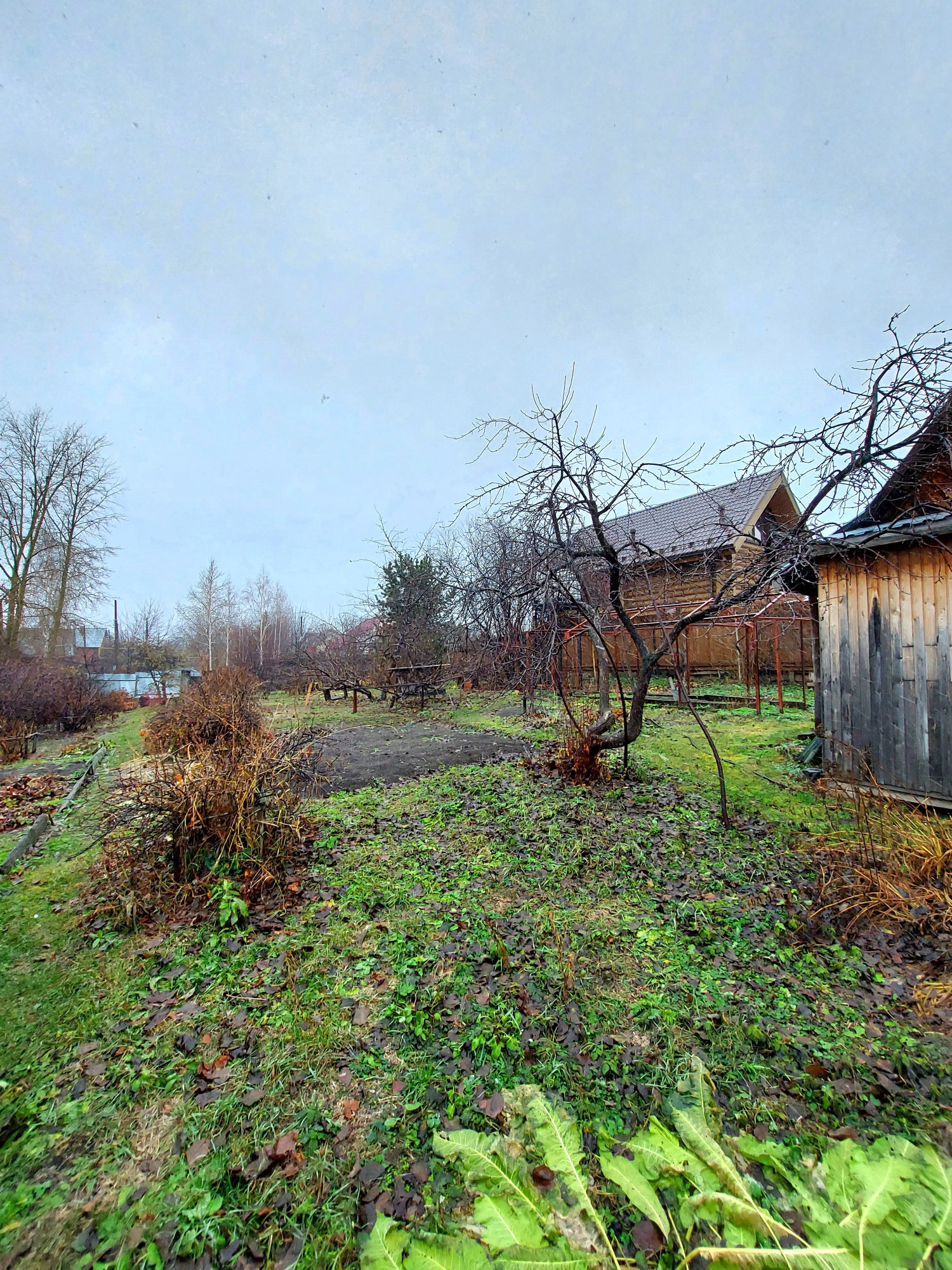 На участке двухэтажный дом с верандой: 5×6 из бруса. Дом с печью, на первом этаже тепло и зимой, второй этаж летний. Электричество заведено.