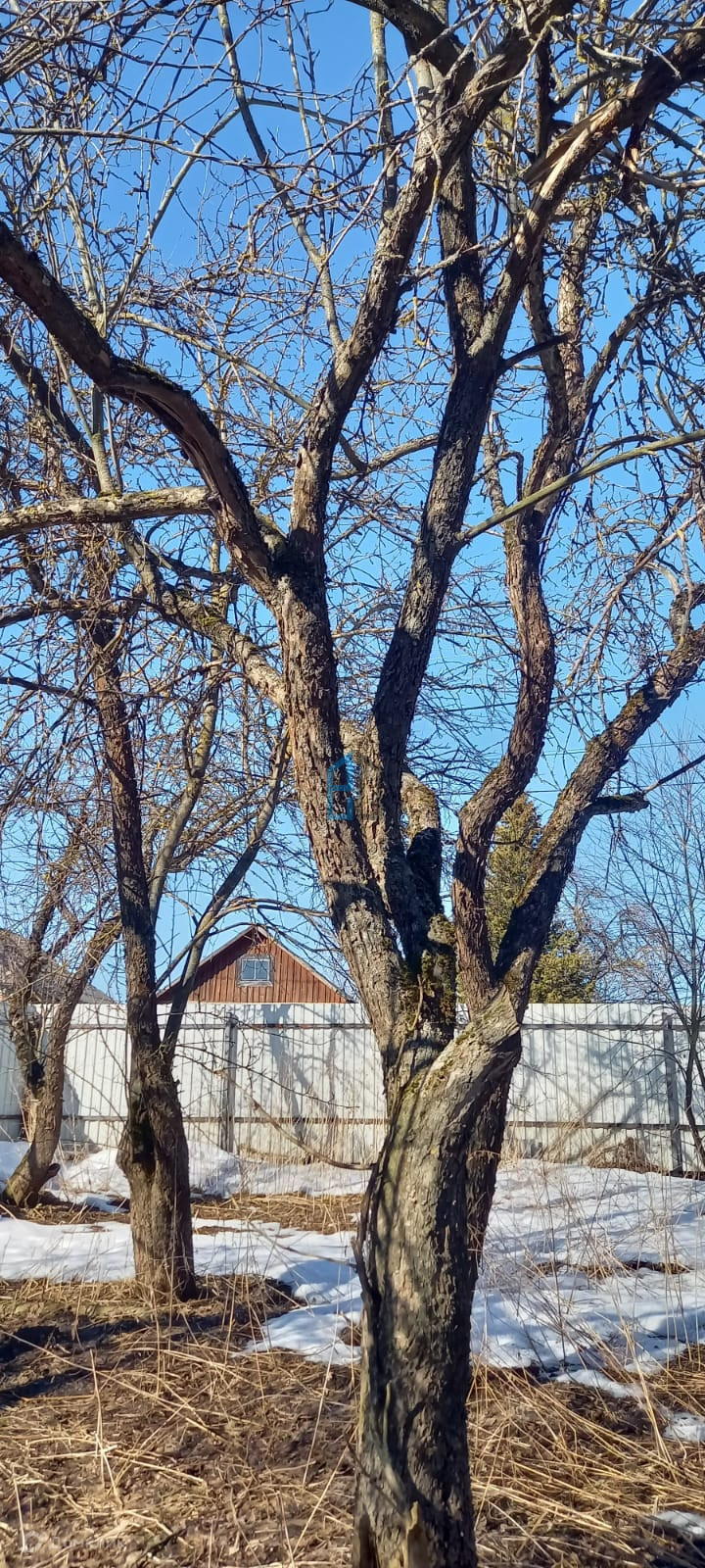 На участке плодоносящие фруктовые деревья. Дом находится на центральной улице: