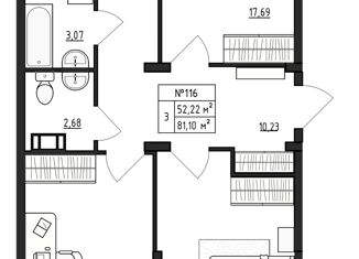 Общая площадь: 81.1 м2