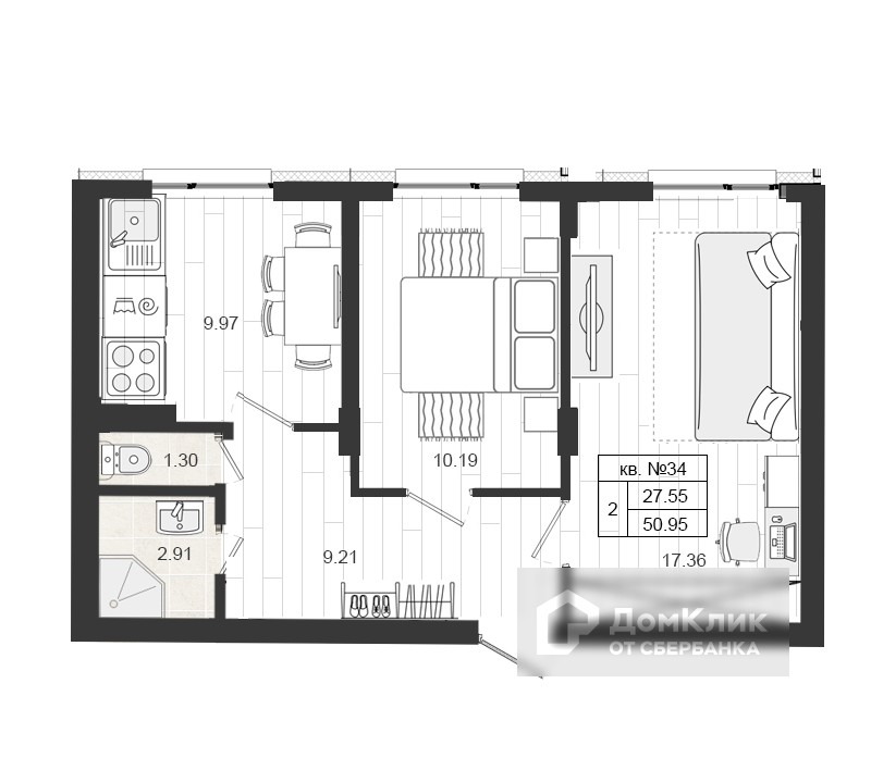 Жилая площадь 27.55 м2