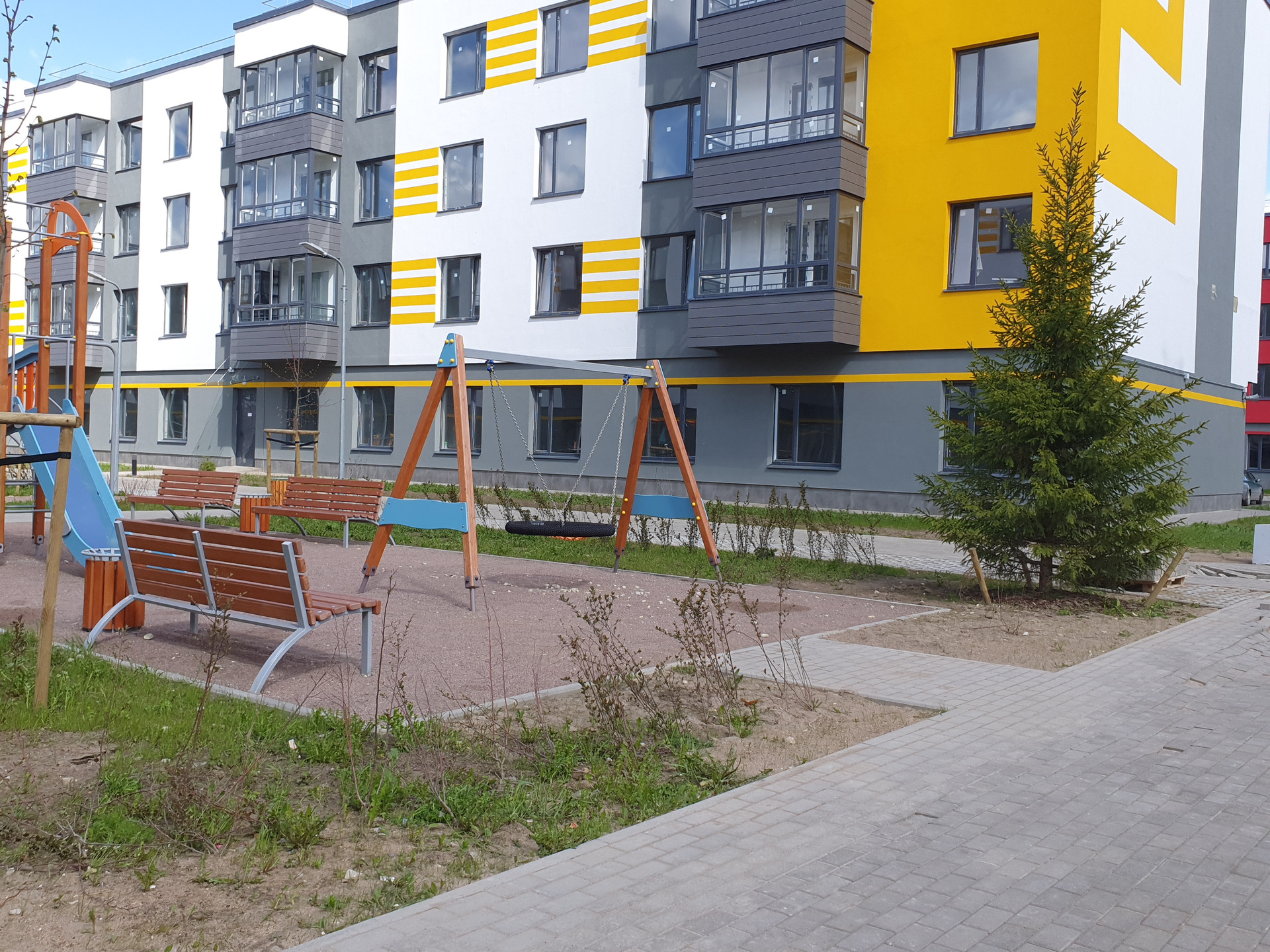 Дворы оборудованы детскими площадками.