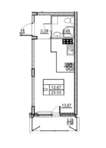 Общая площадь 24 м2