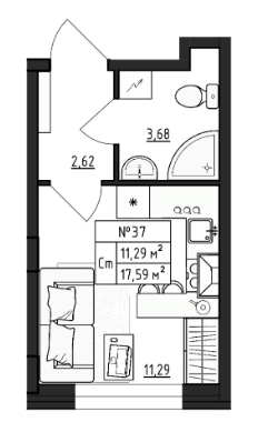 Общая площадь 17.59 м2