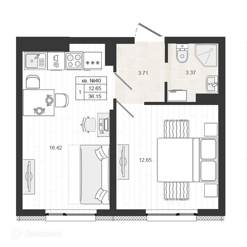 Общая площадь 36.15 м2