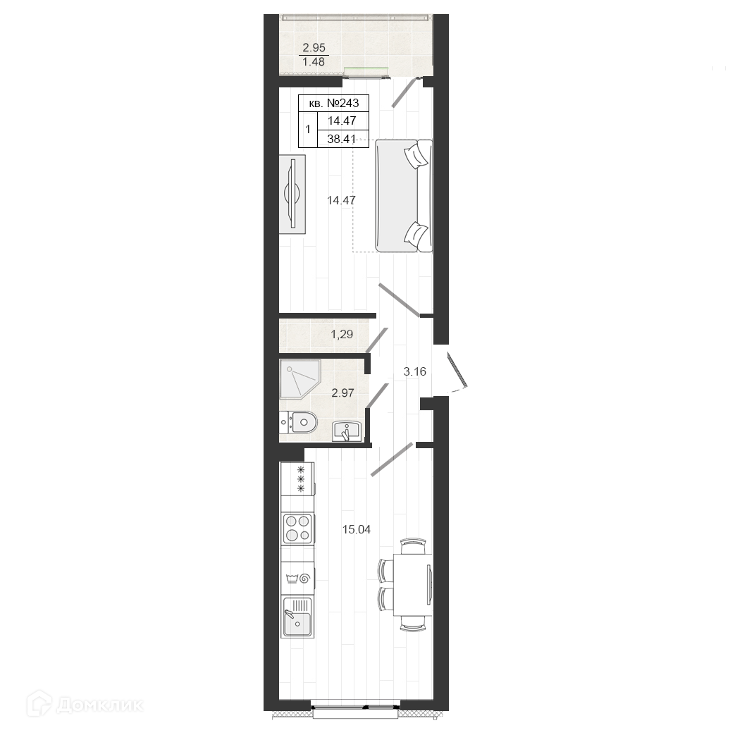 Площадь кухни 15.04 м2