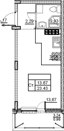 Общая площадь 22.47 м2