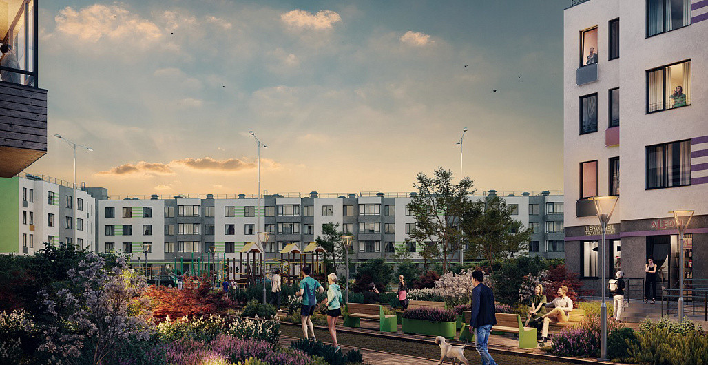 Территория комплекса благоустроена — спроектированы детские и спортивные площадки, площадки для отдыха и места для выгула животных. Внутренние дворы закрыты от случайных прохожих. На первых этажах предусмотрены коммерческие помещения. В пешей доступности спроектированы торговый комплекс и фитнес-центр.