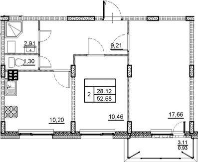 Общая площадь 53 м2