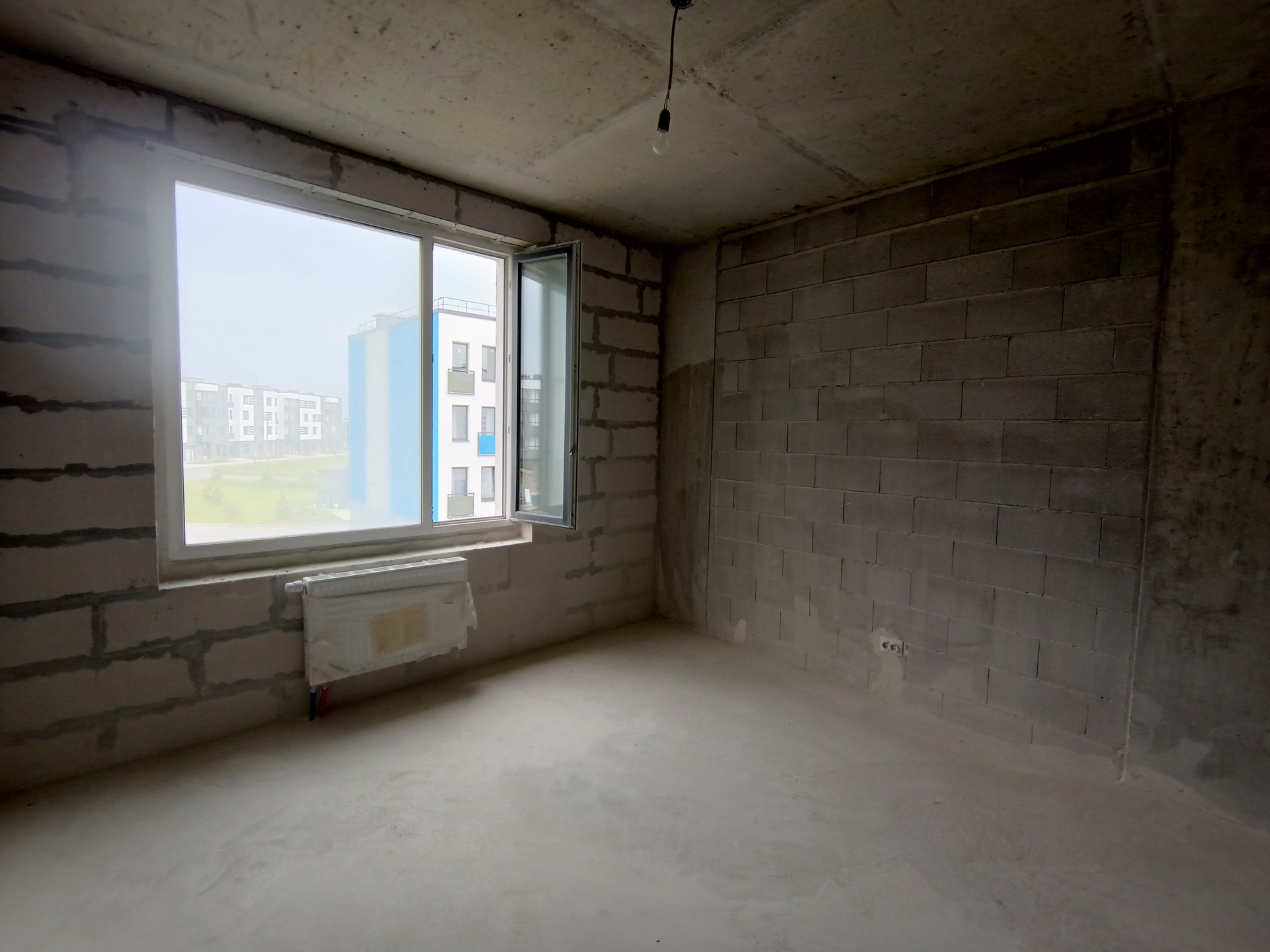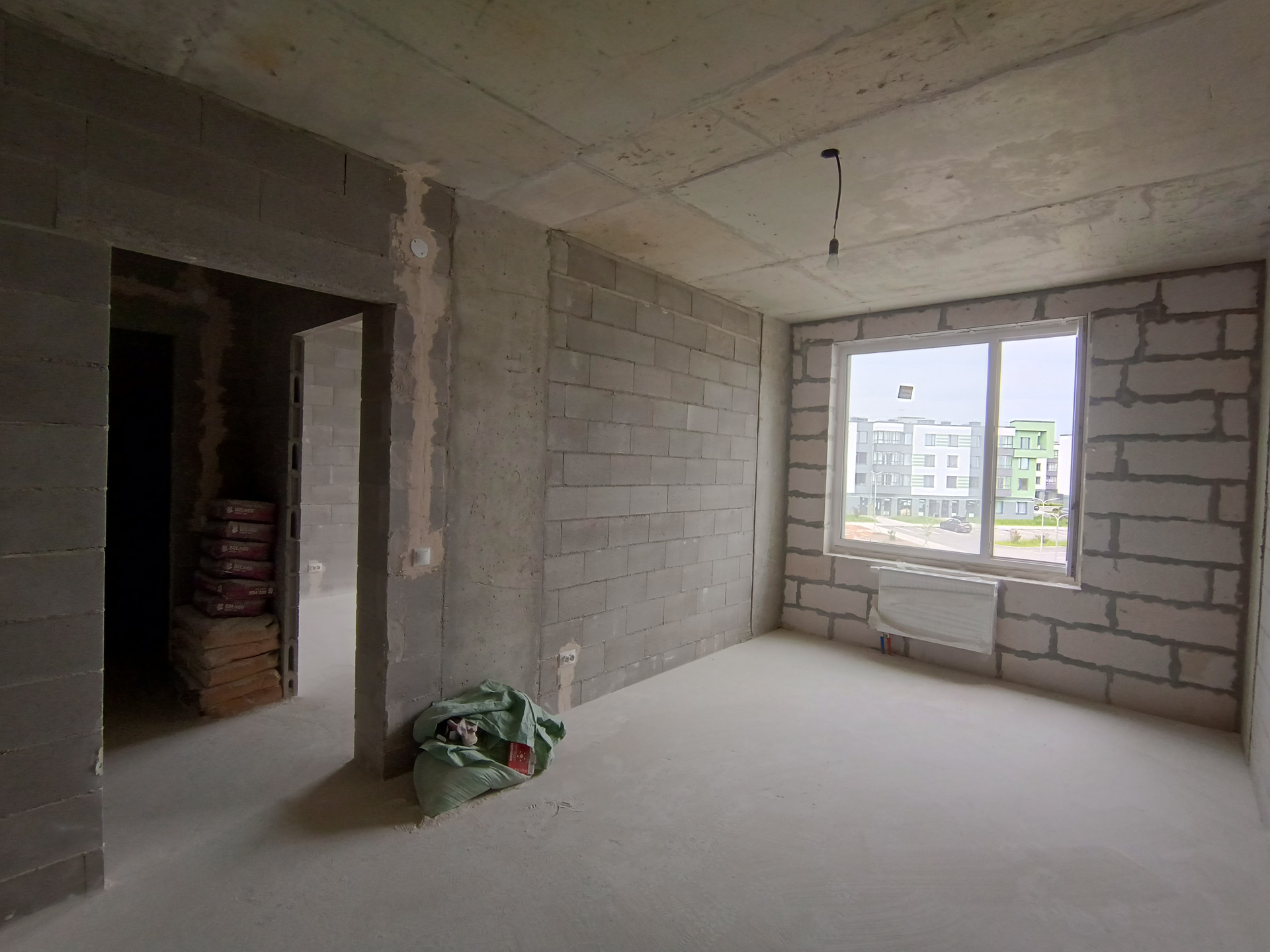 Квартира расположена на 3 этаже 4-х этажного монолитного дома, средняя секция. Квартира состоит из кухни-гостиной 16,5 кВ.м. и спальни 12,5 кВ.м. , совмещенного санузла 3.35 кВ.м., прихожей 3.67 кВ.м.. Балкона нет.