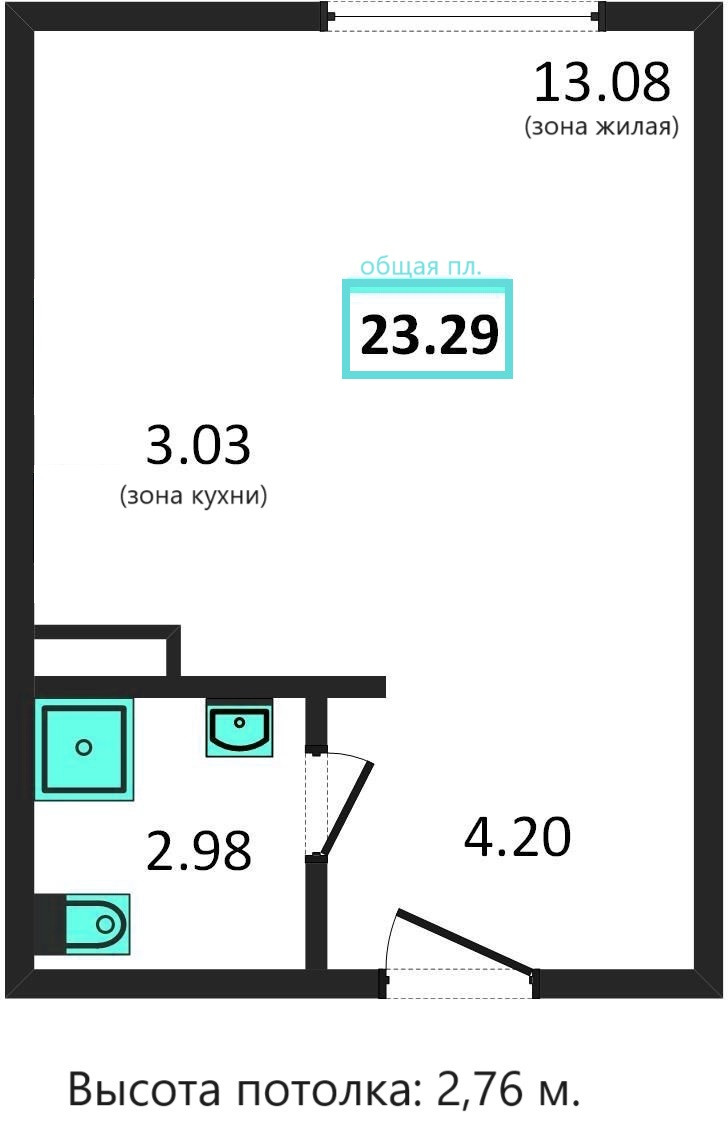 Общая площадь 23.2 м2