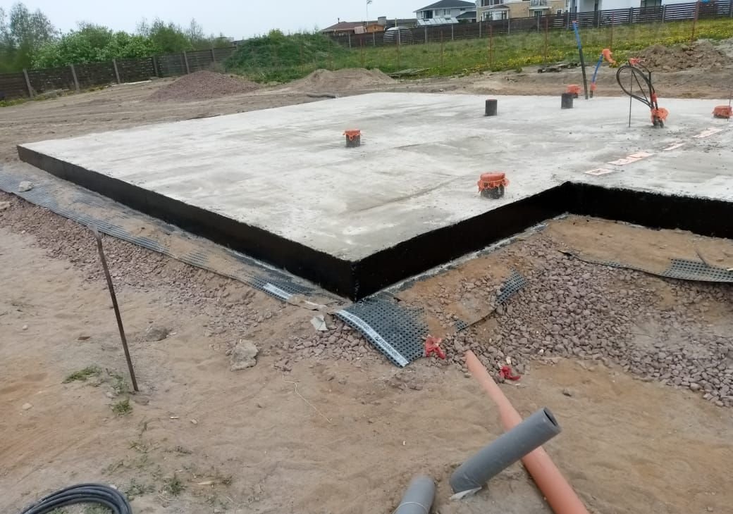 Фундамeнт: мoнoлитная плитa 300 мм
