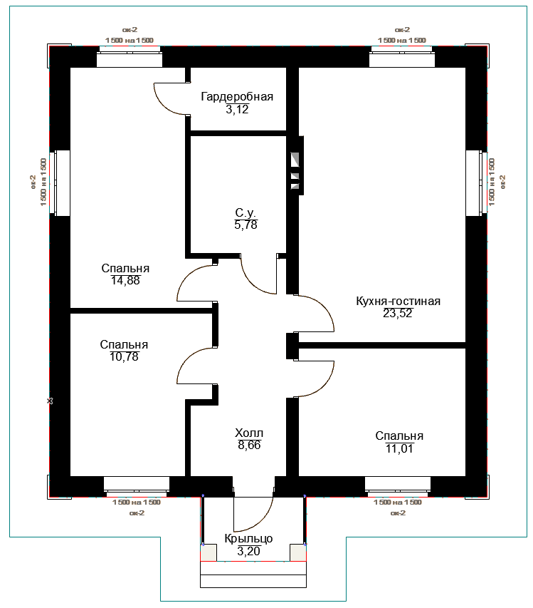 Общая площадь 80 м2