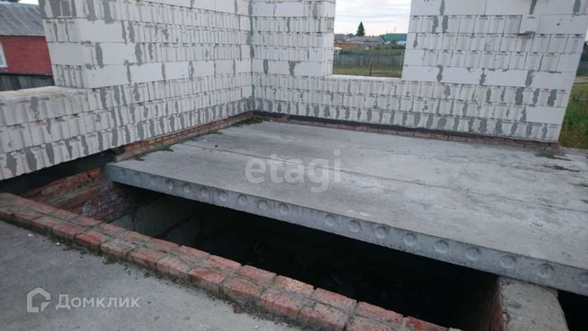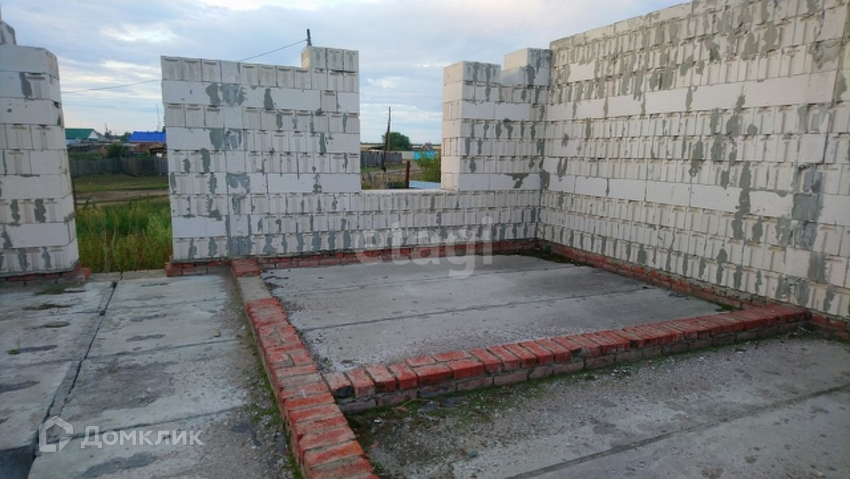 На участке находится недостроенный дом. Площадь по этажу - 135 кв м. Материал стен - Сибит, толщина стен - 600 мм, фундамент - жб блоки, перекрытия - жб плиты. Полноценный цокольный этаж с. высотой от пола до перекрытия первого этажа - 3 м.