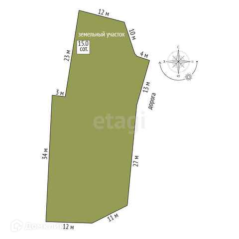 Площадь участка 15 сот.