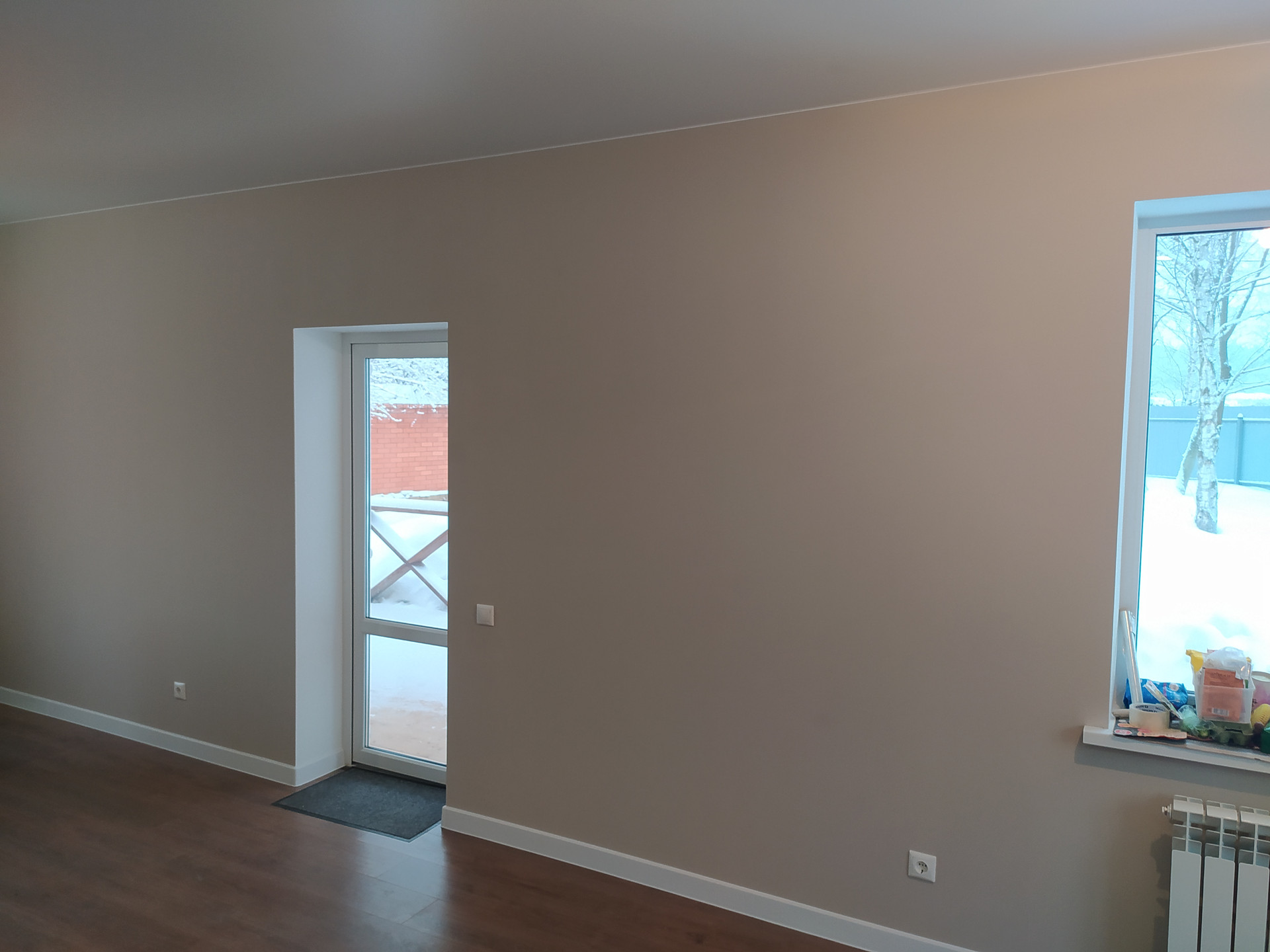 Фундамент - монолитная плита, стены - Каркас, перекрытия деревянные, 1эт. полностью везде уложен теплый пол.