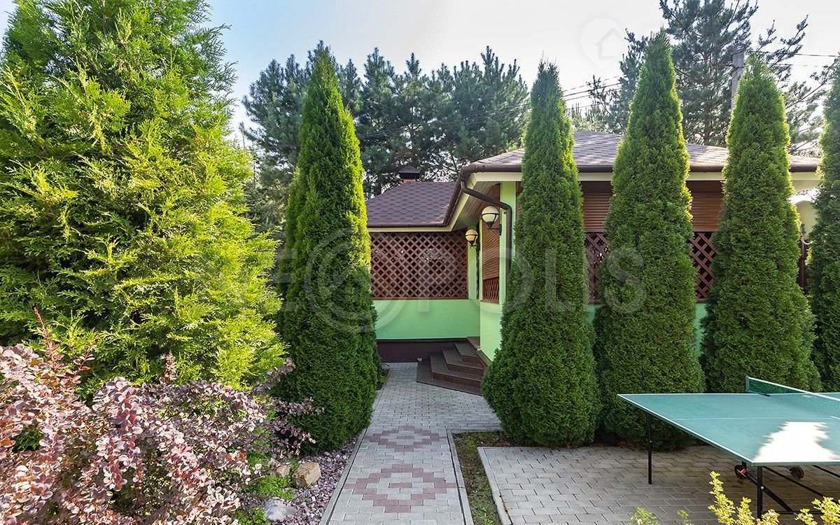 Дом расположен на красивом ухоженном участке, на котором разбиты цветочные клумбы и растут хвойные и плодовые деревья. Въезд осуществляется через откатные ворота марки Неrmаnn.
