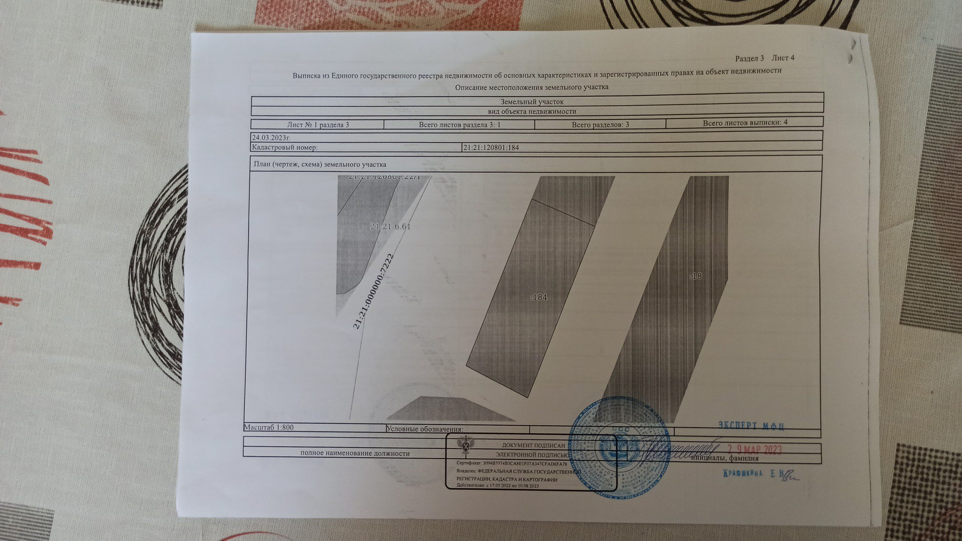Кадастровый  номер : 21:21:120801:184.