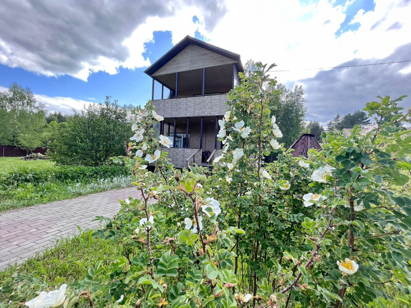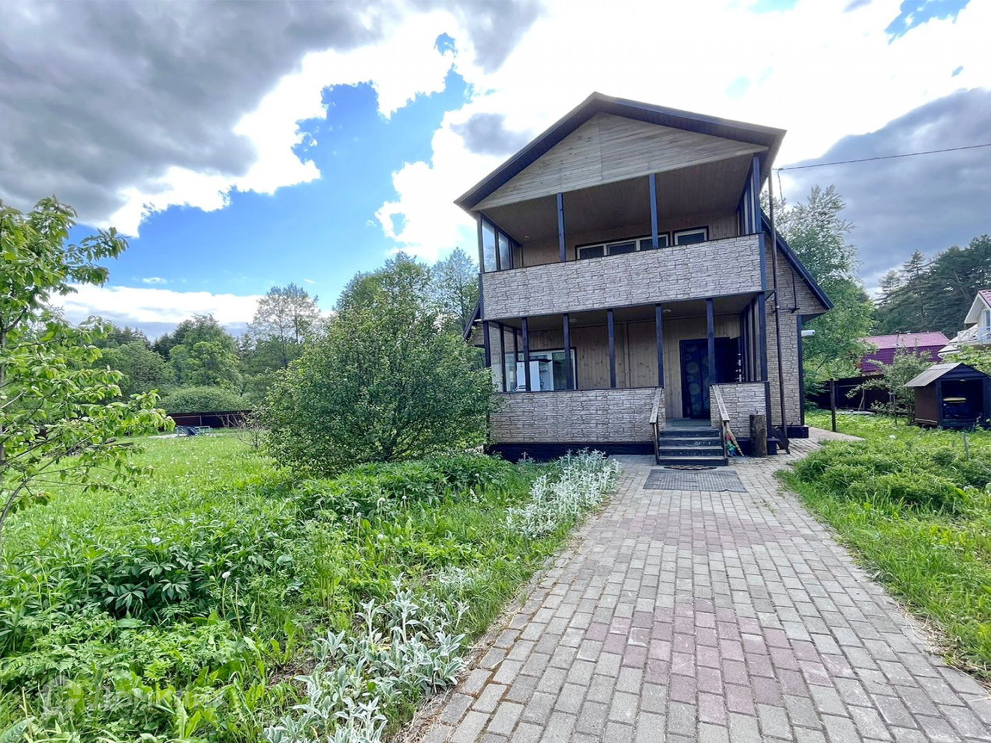 *Дом двухэтажный, построен из высококачественного бруса (20), обшит фасадными панелями.