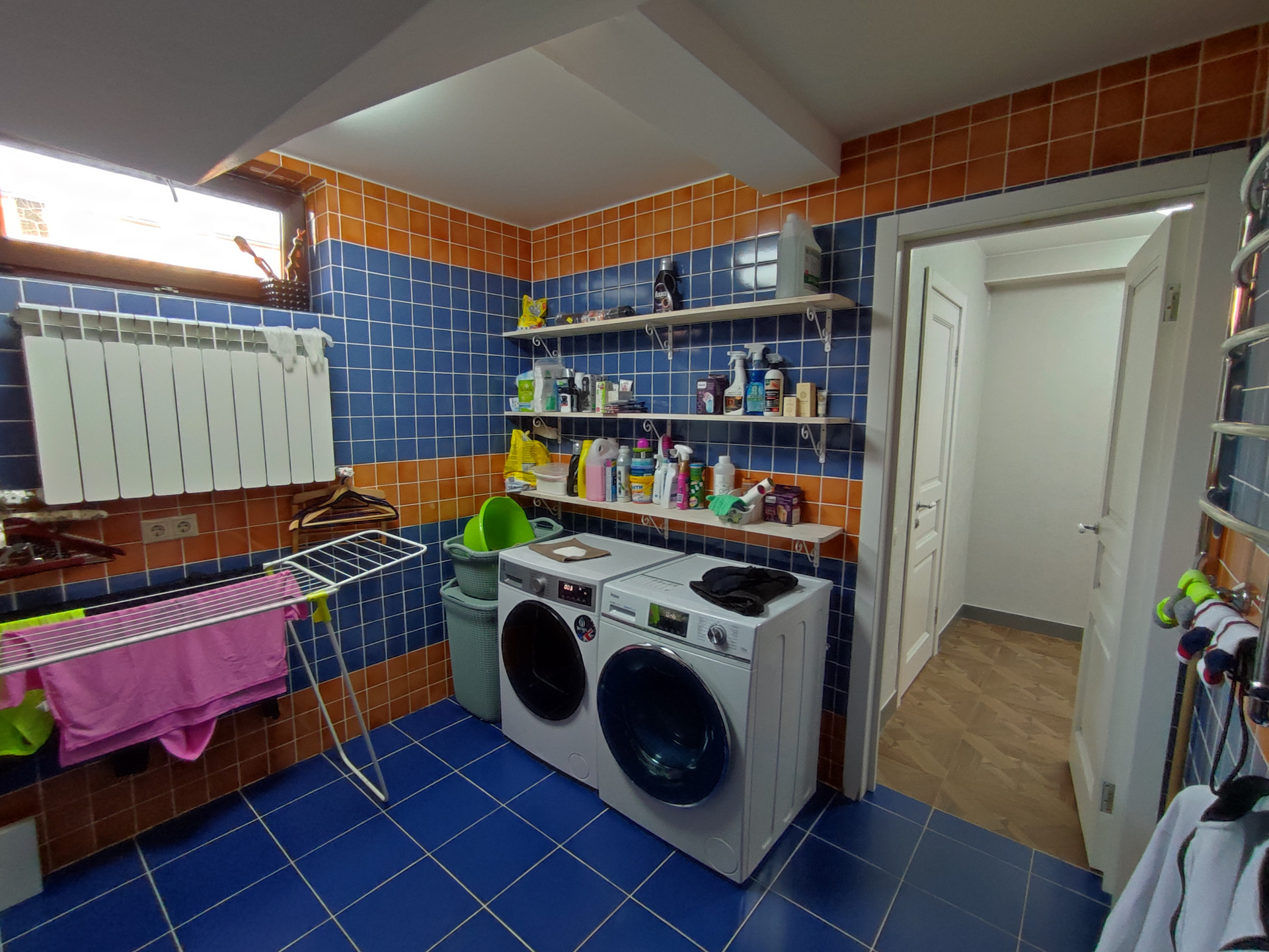 Цокольный этаж: 2 комнаты (10,1 м2, 12,3 м2), санузел 5 м., прачечная 8.8 м2, два подсобных помещения (8,0 м2 и 6,1 м2), кладовая 9,7 м2.