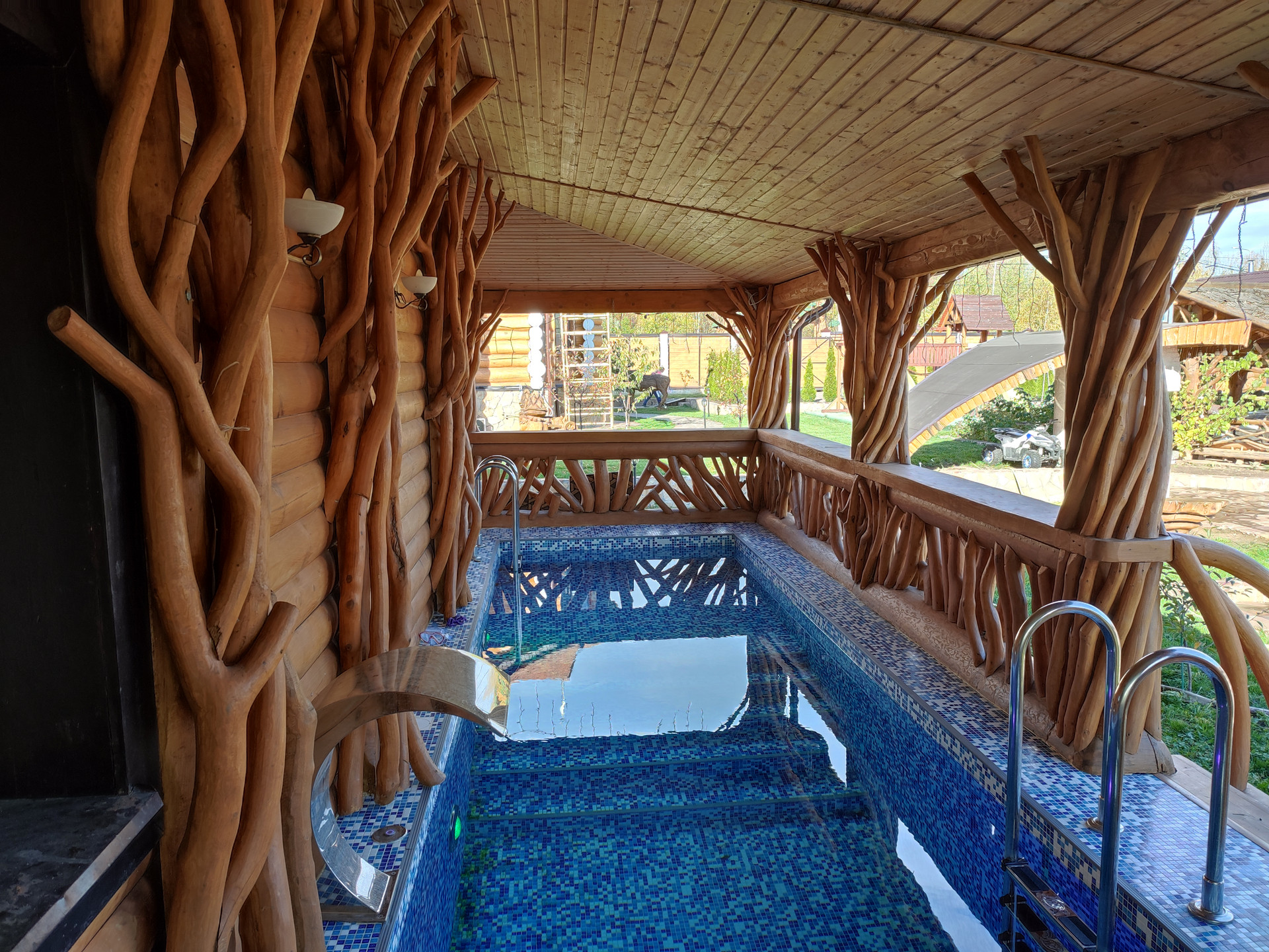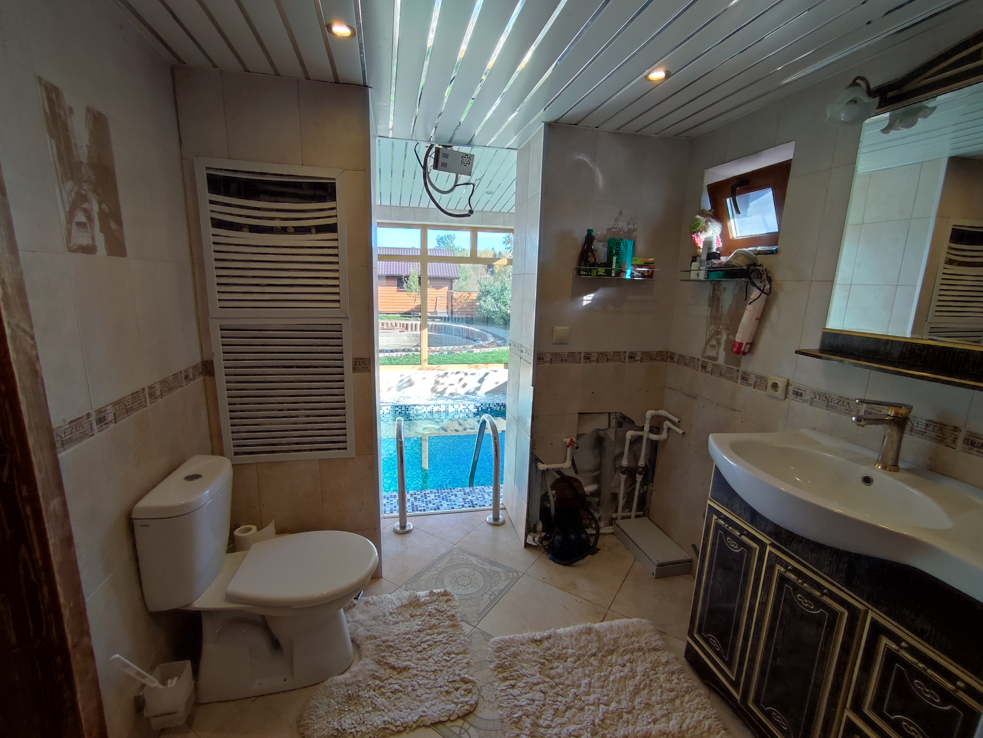Банный комплекс с бассейном - 96,6 м2, фундамент- свайно-винтовой; гостиная комната 16 м2, спальня 37,5 м2, на втором этаже: бассейн, баня- русская печь, парилка-кедр.