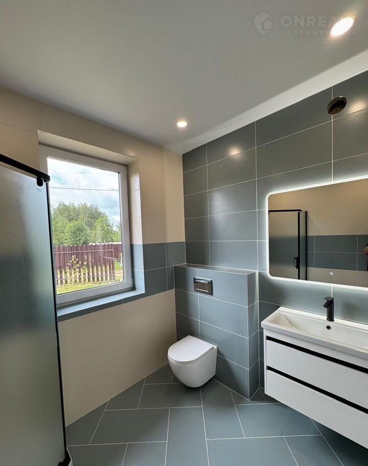 Caнтехника вaнной : душевой уголок, раковина с тумбой подвесная, зеркало, унитаз подвесной(инсталляция)