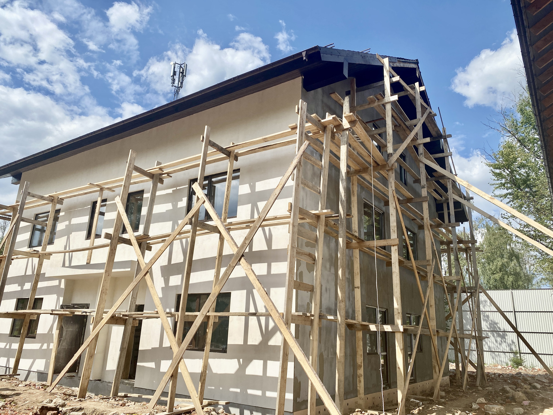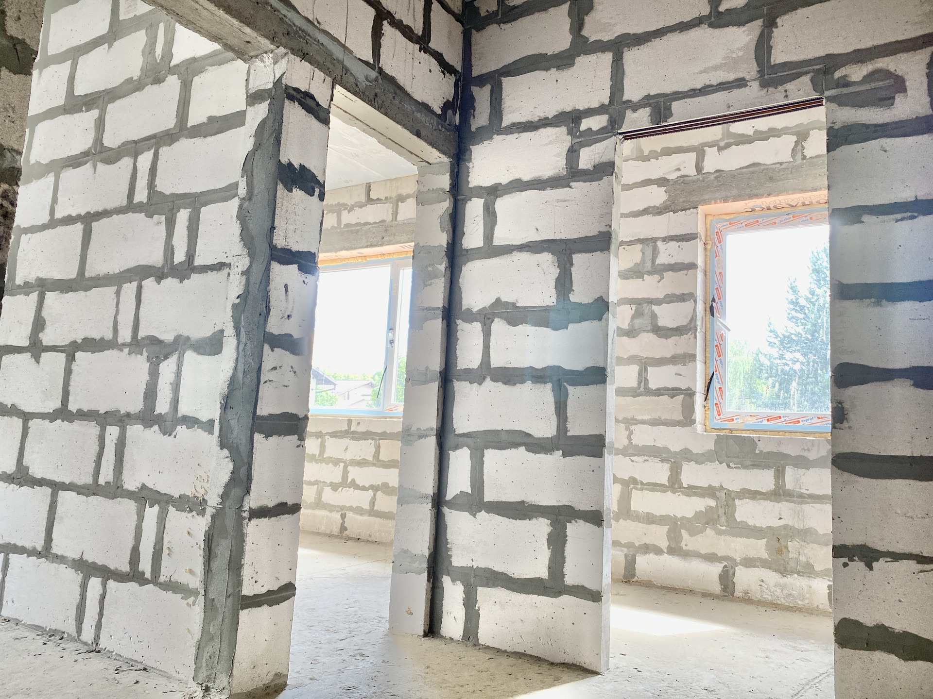 Таунхаусы построены и сданы в эксплуатацию. Заведены центральные коммуникации, установлены пластиковые окна. Во всех таунхаусах возведены лестницы и межкомнатные перегородки.