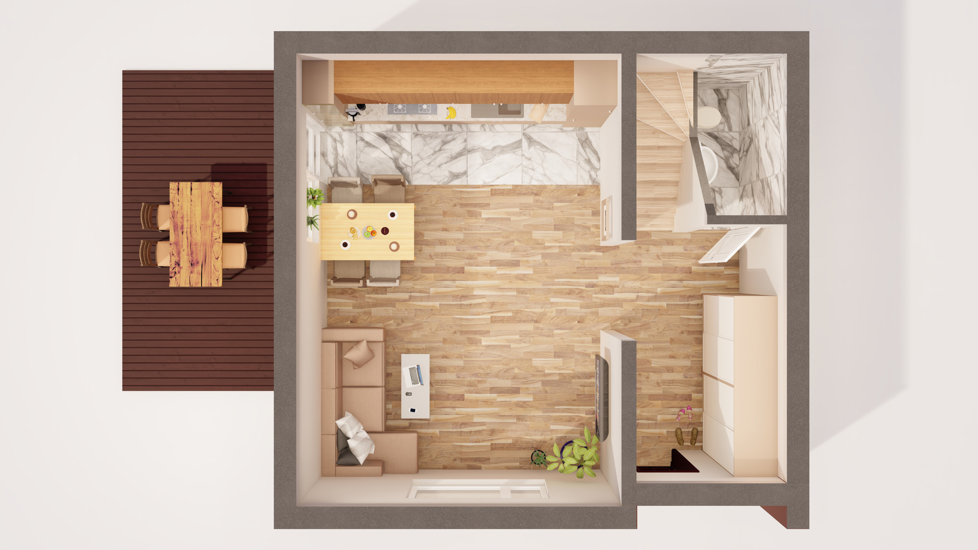 Просторная кухня-гостиная, собственная веранда, 3 спальни, гардеробная, высокий мансардный этаж, который может быть роскошной спальней/детской игровой/собственным залом для йоги/большим залом для того, чтобы собираться компанией друзей или большой семьей.