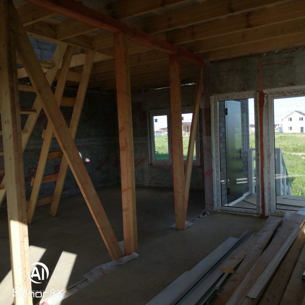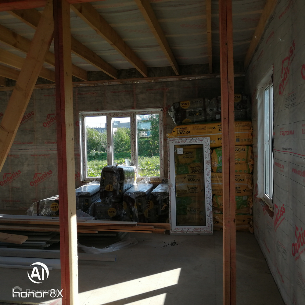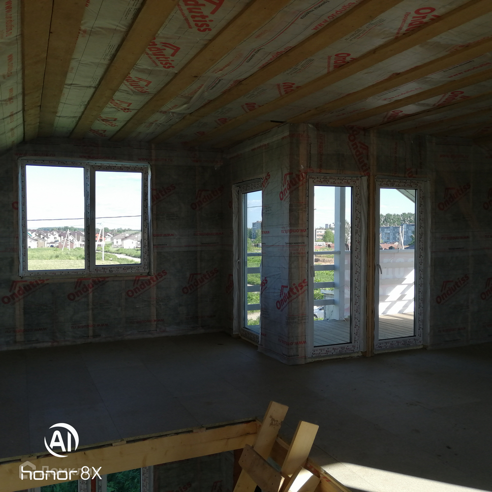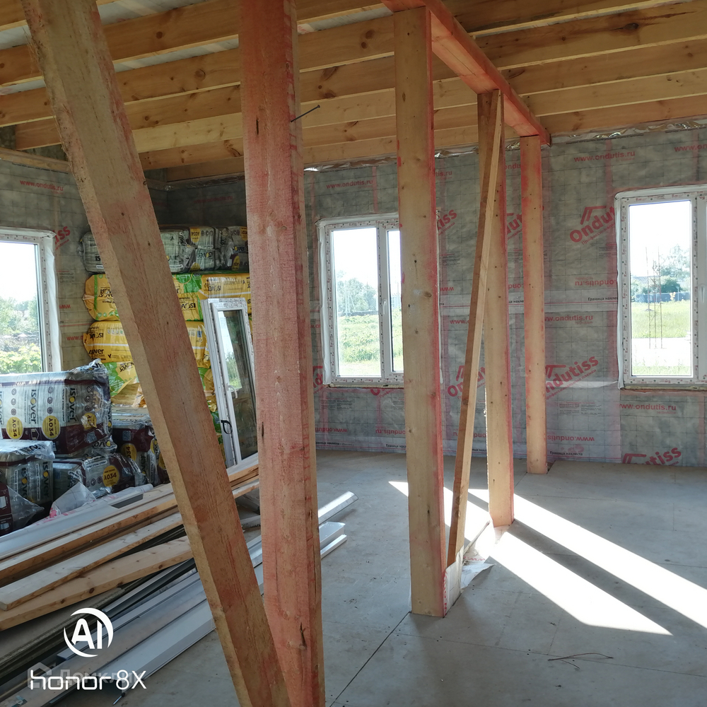 Дом продаётся в таком виде как на фотографии,т.е. готовый каркасный дом с тёплым контуром+скважина,вода заведена в дом,+ септик(переливные кольца).