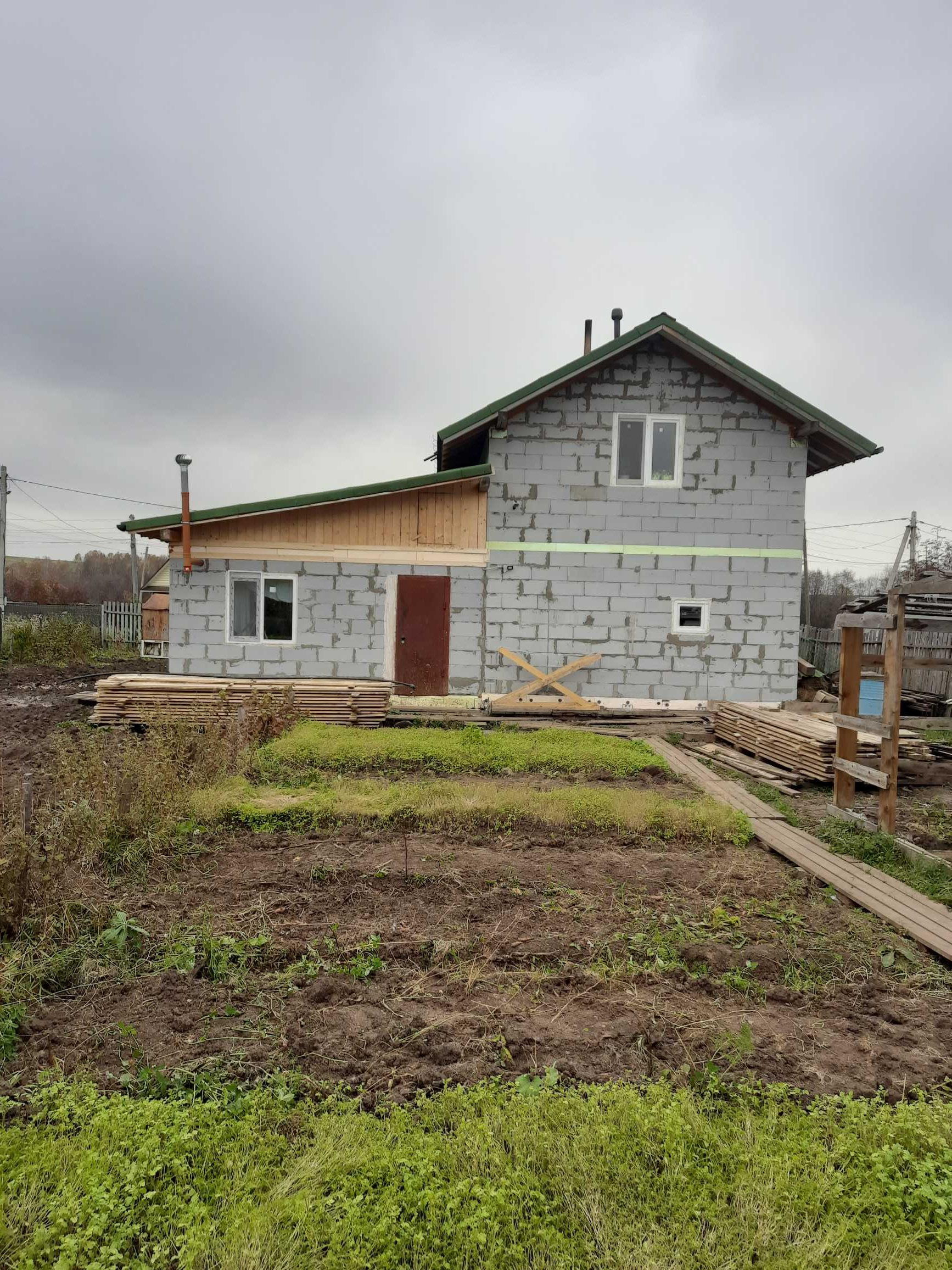 В продаже двухэтажный дом. Дом жилой с печным отоплением + электро. Сделан пристрой, но без внутренней отделки.  На первом этаже кухня-гостиная, баня. На втором этаже одна большая комната. Имеется сарай деревянный 3×7, беседка 20 м.кв., металлический гараж, недостроенный гараж из газоблоков 5×8., теплица из поликарбоната 3×6, скважина 20 м, канализация. Участок разработан, посадки плодовых деревьев,  кусты, ягоды, виноград. Торг обсуждается.