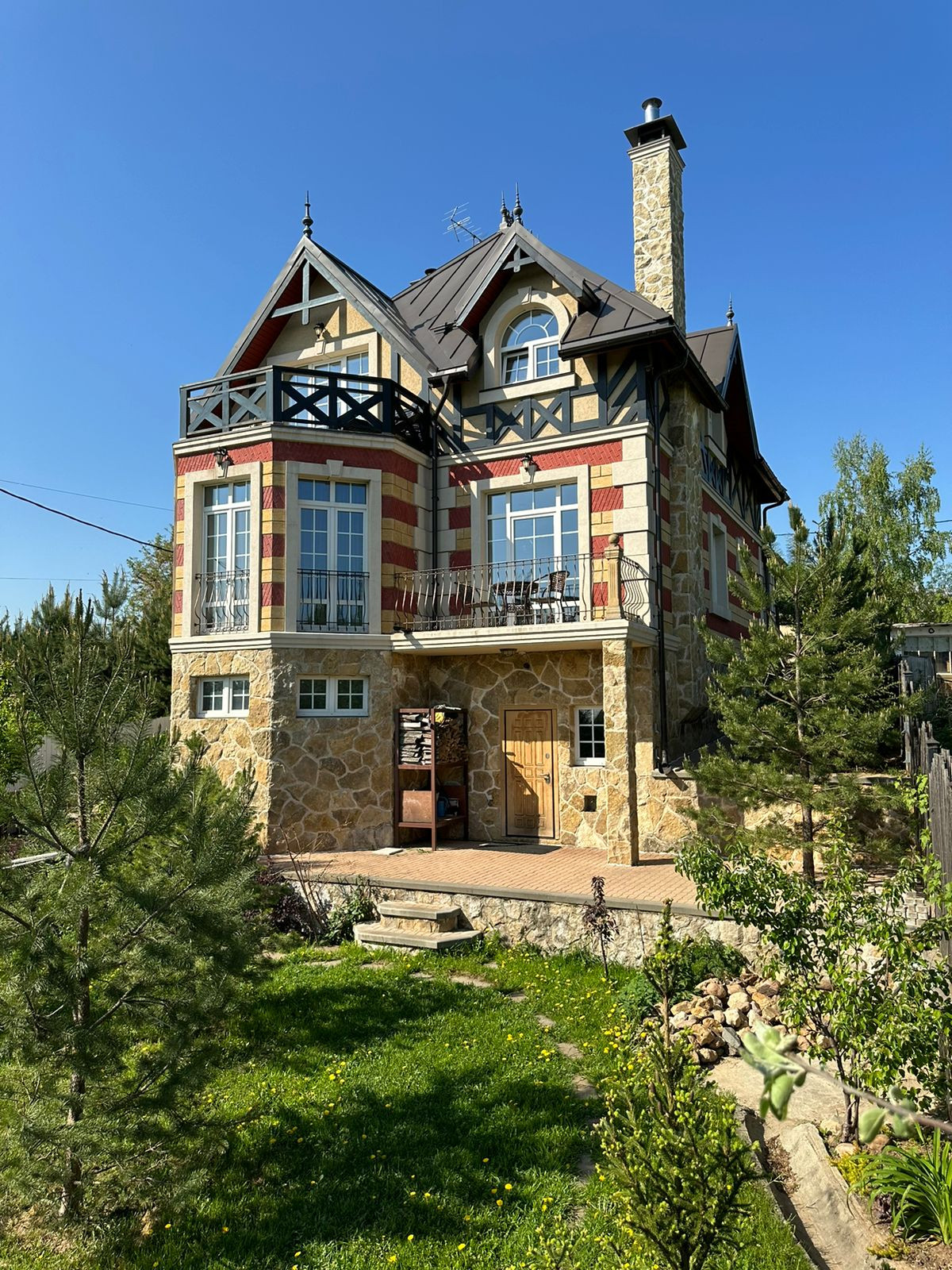 — Фасад выполнен из натурального камня с декоротивными элементами;